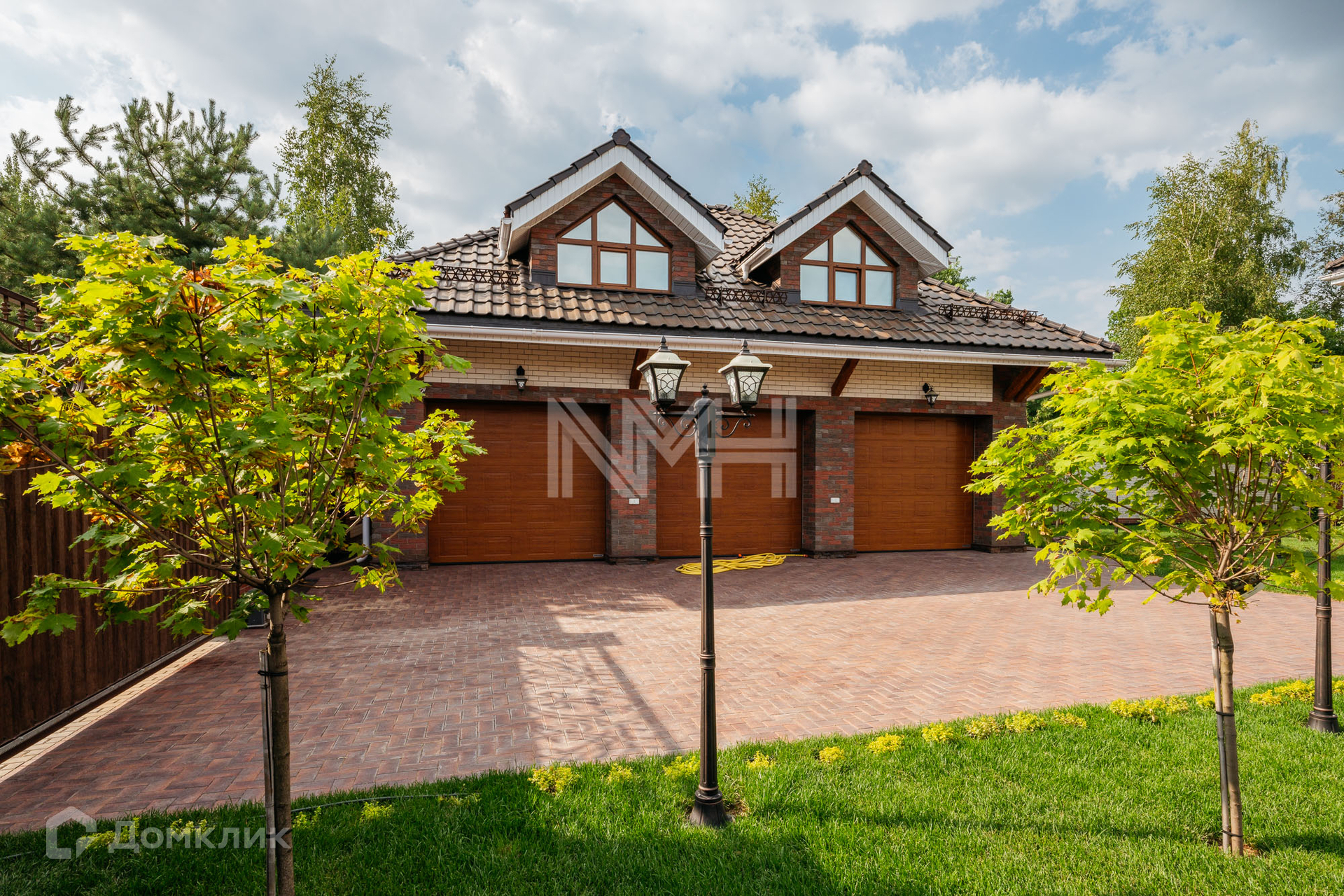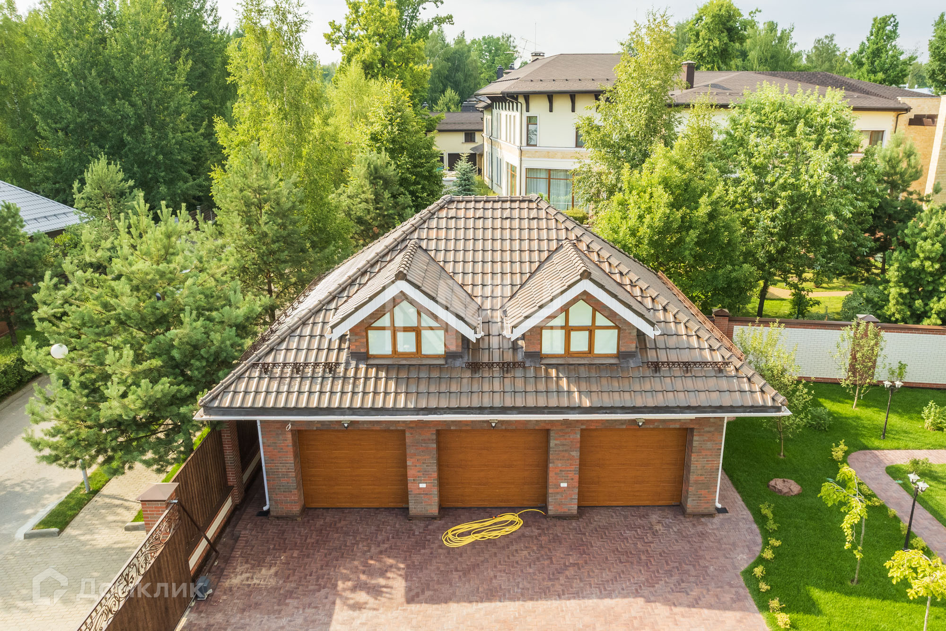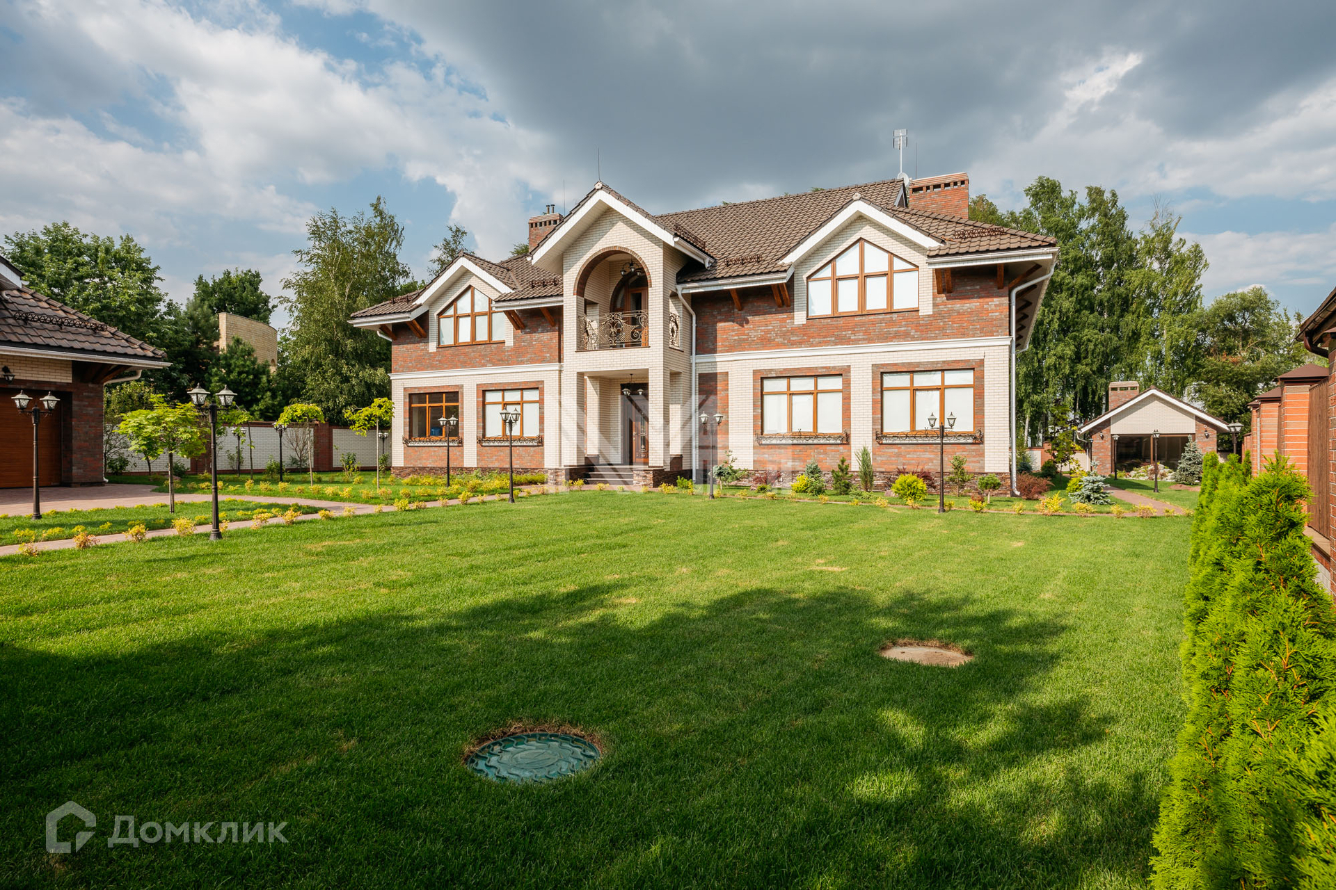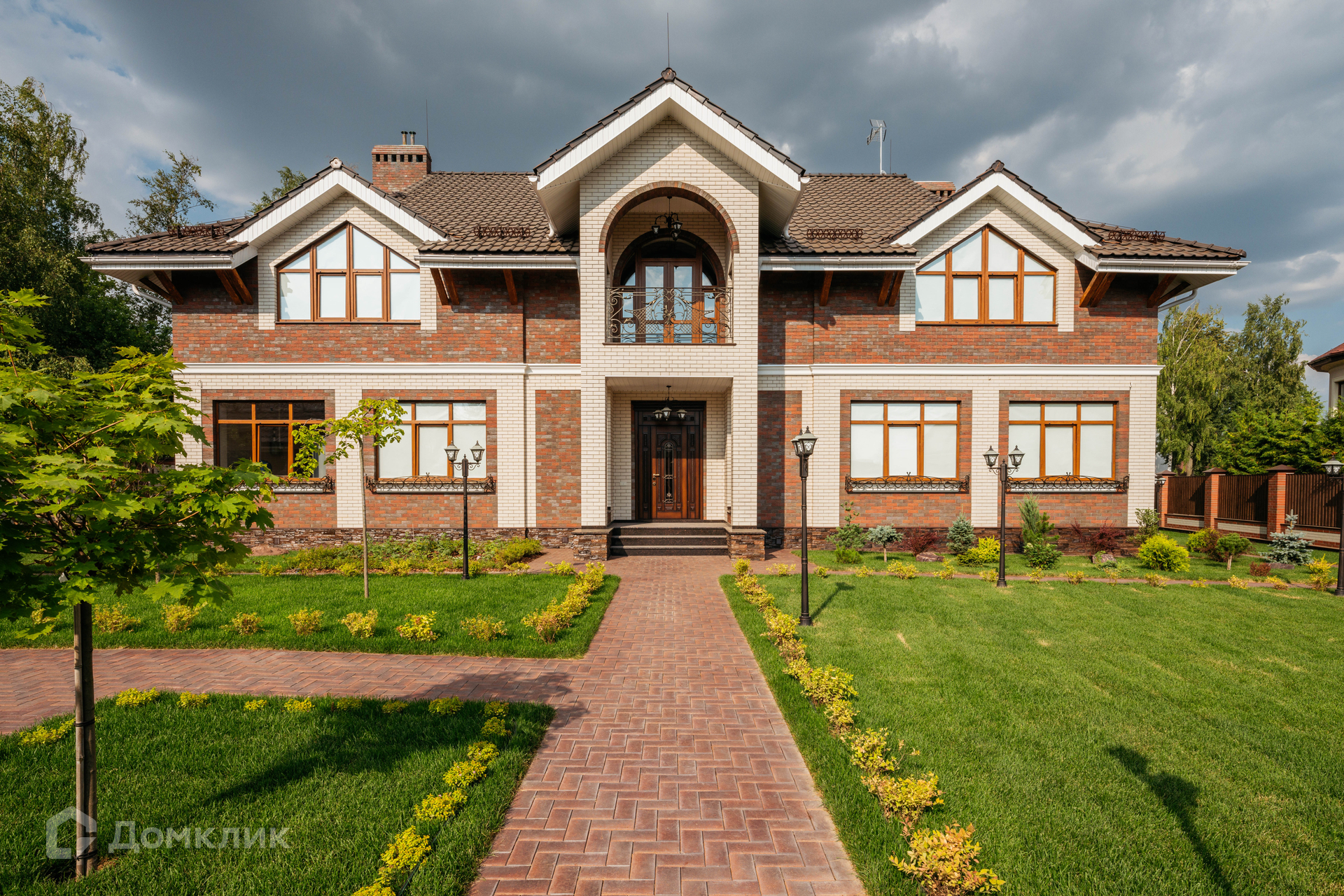 Загородный дом по авторскому проекту. Дом построен из кирпича, облицован немецким клинкерным кирпичом и декоративным камнем, крыльцо оформлено натуральным гранитом. Ламинированные стеклопакеты под дерево, с большой площадью остекления. Кровля — керамическая черепица Braas.
