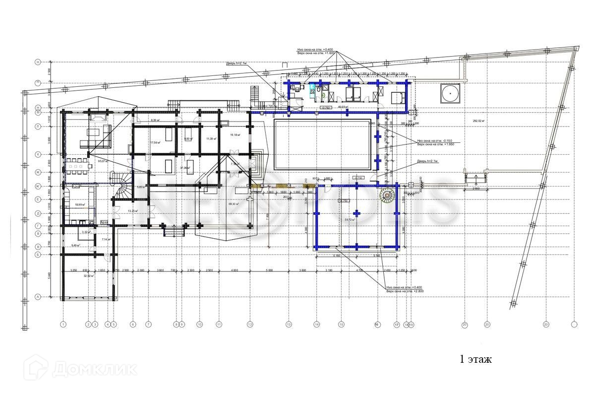1 этаж: холл, кухня-столовая, гостиная с выходом на террасу, спальня с ванной комнатой, кабинет, бойлерная, SPA зона: бассейн, джакузи, комната отдыха.