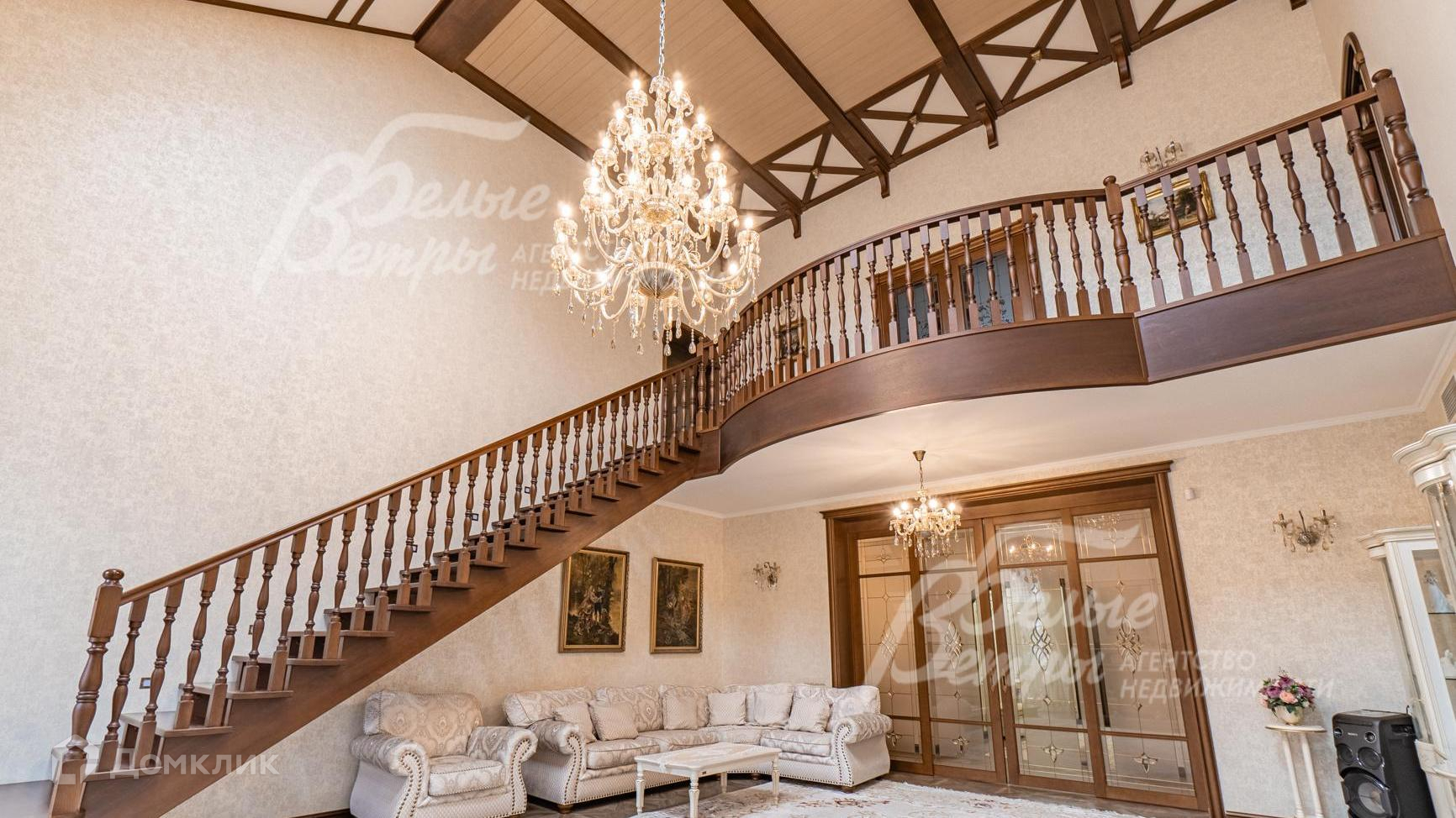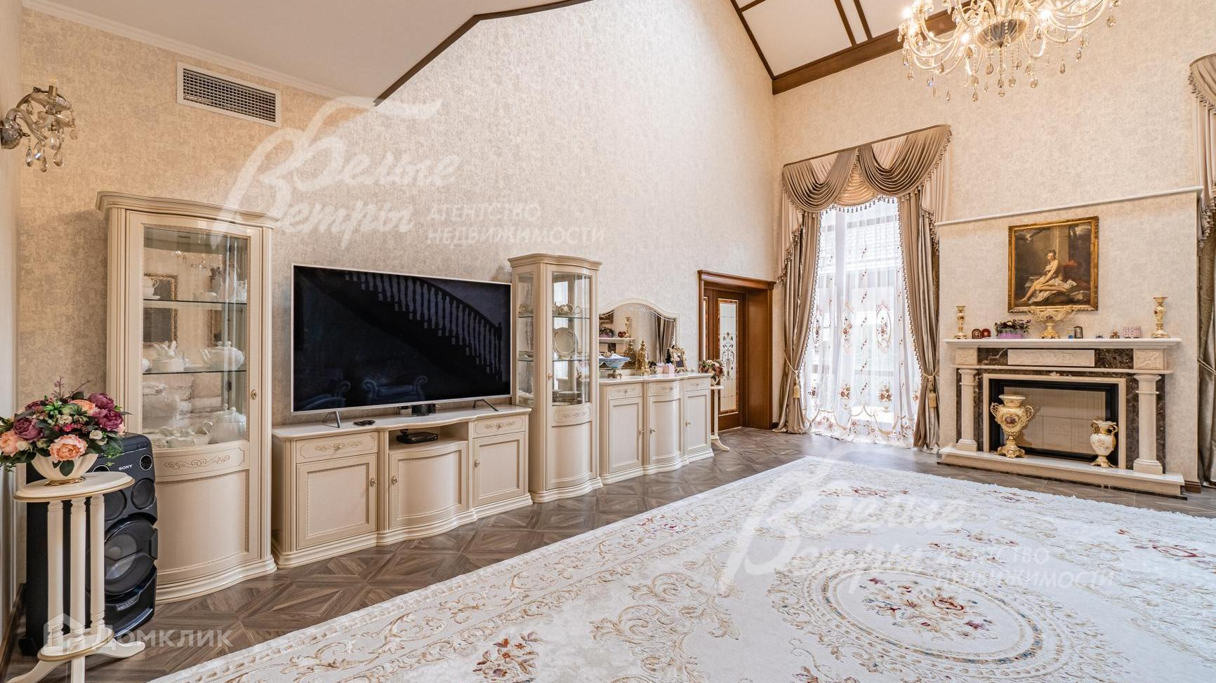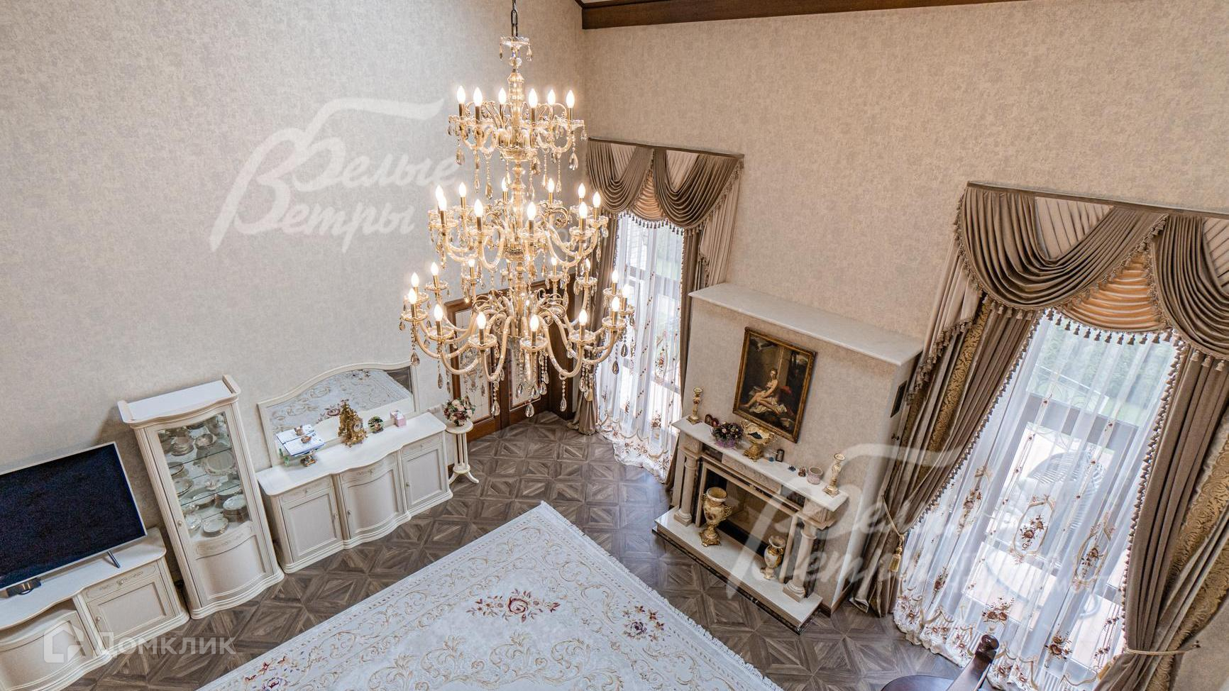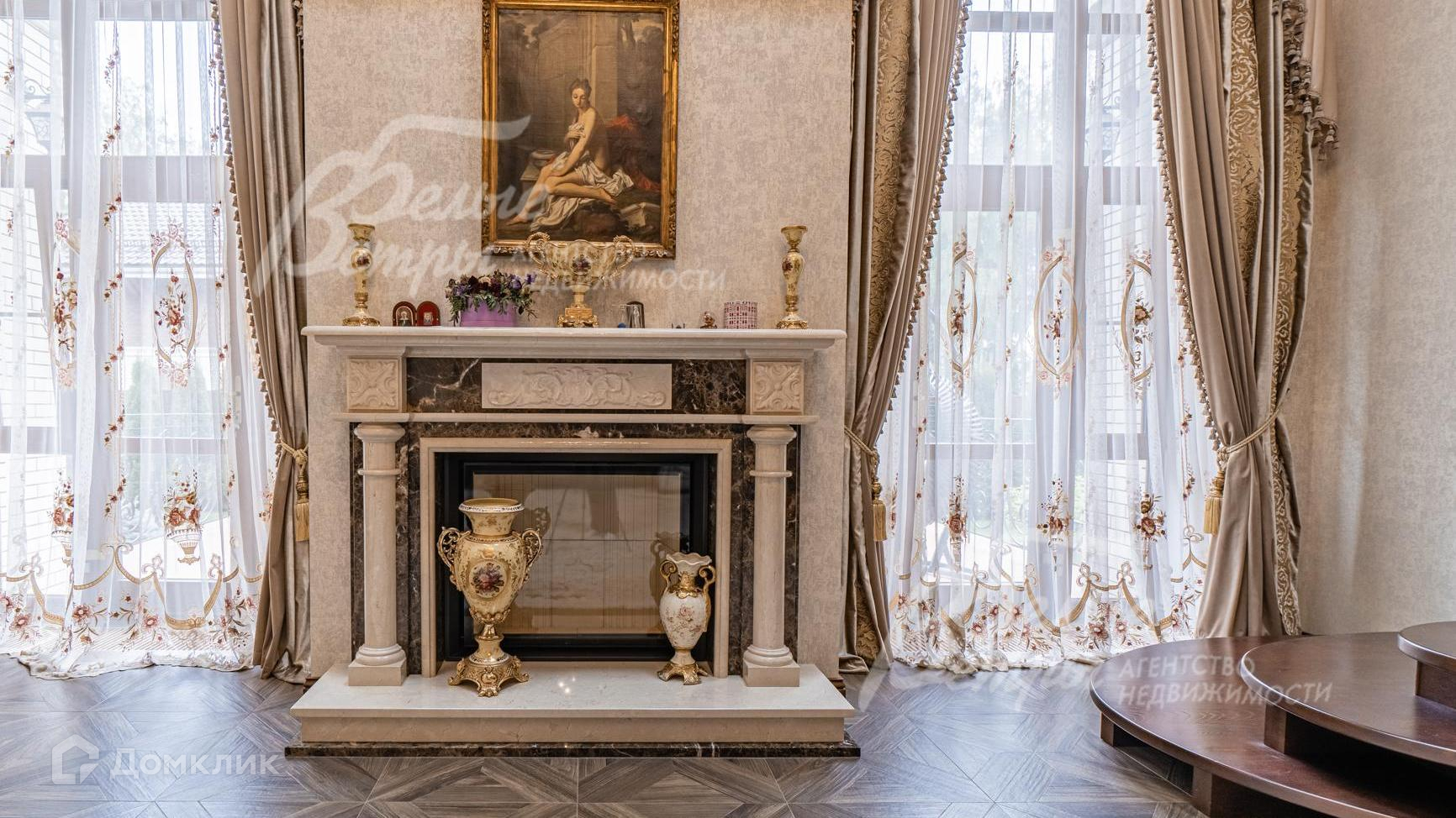 Внутренняя отделка: выполнена элитная отделка с дизайнерскими элементами. На стенах английские обои и декоративная венецианская штукатурка. На полу - паркет, керамогранит с подогревом. Широкая деревянная лестница из дуба с подсветкой. Подвесные многоуровневые потолки. Дорогая импортная сантехника, джакузи почти в каждом санузле. Все коммуникации разведены, установлены биметаллические радиаторы, внутрипольные конвекторы. Итальянские двери из массива дуба высотой 215 см (в гостиной 285 см)с резными порталами и проемами. Итальянские подоконники из мрамора. Камин облицован мрамором..