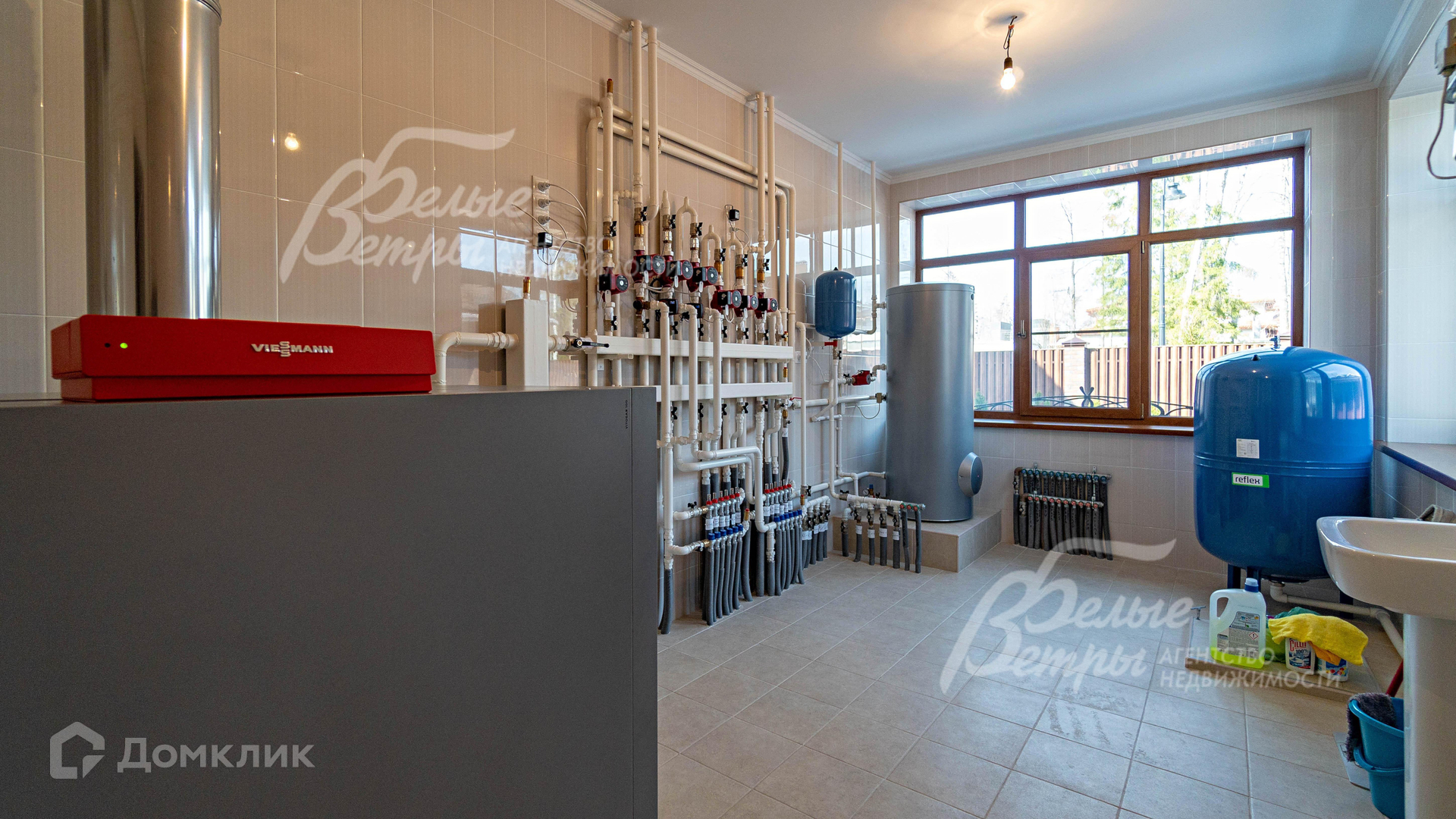 Инженерное обеспечение: в доме установлены котел Viessmann, бойлер Viessmann 400 л и многоуровневая система очистки воды. Естественная приточно-вытяжная вентиляция, в бассейне и подвале - принудительная, в спальнях установлены кондиционеры. Есть проводка под сигнализацию. Система автополива Hunter..