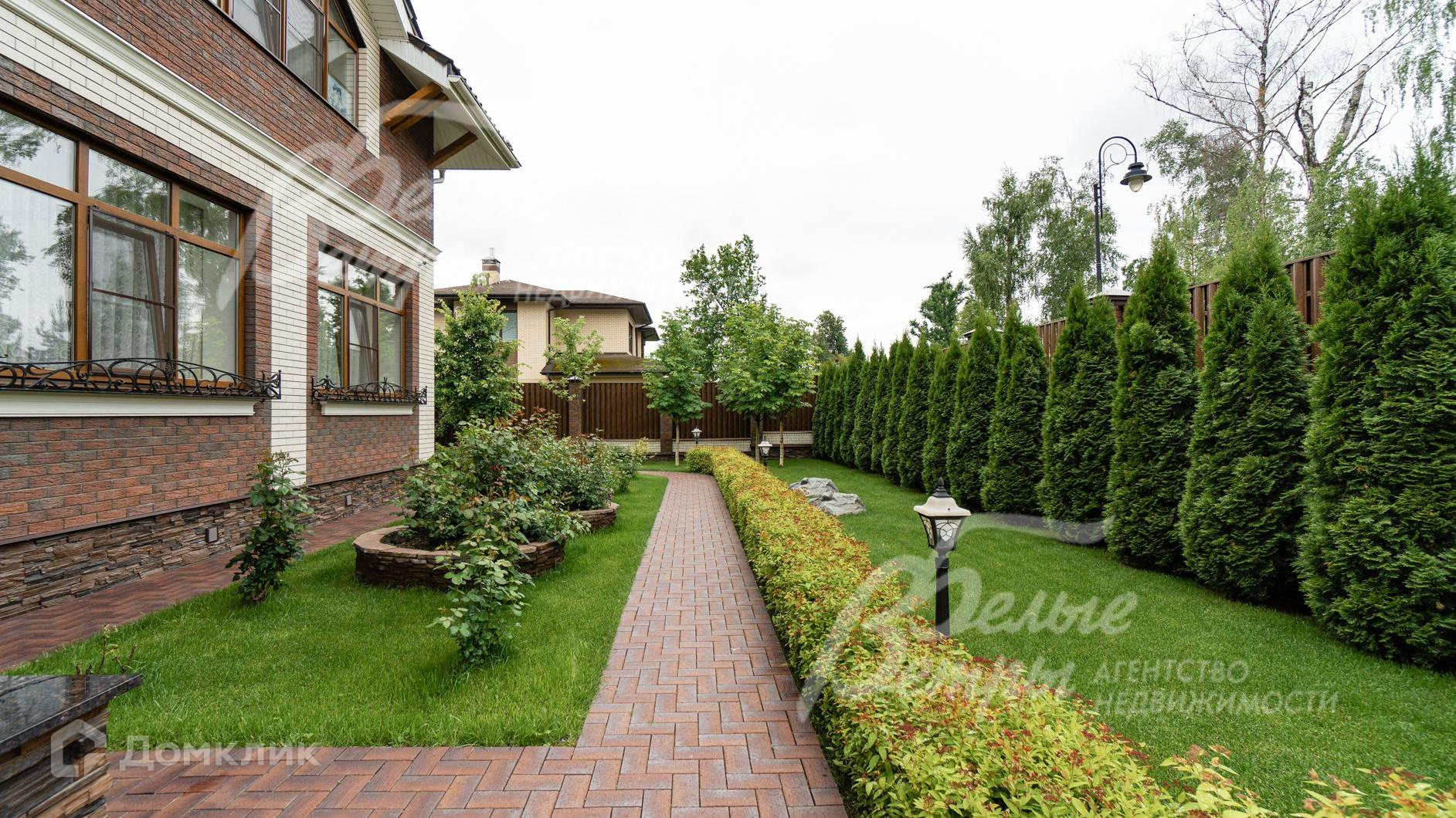 Благоустройство участка: на участке растут лесные деревья (всего около 150 деревьев, в том числе 6 берез высотой выше 20 м), высажены цветники, выложены дорожки из клинкерной брусчатки, организован газон. \nСтатус земли: земли населенных пунктов для ИЖС. Сделано уличное освещение - 25 фонарей, сделан дренаж и ливневая система..