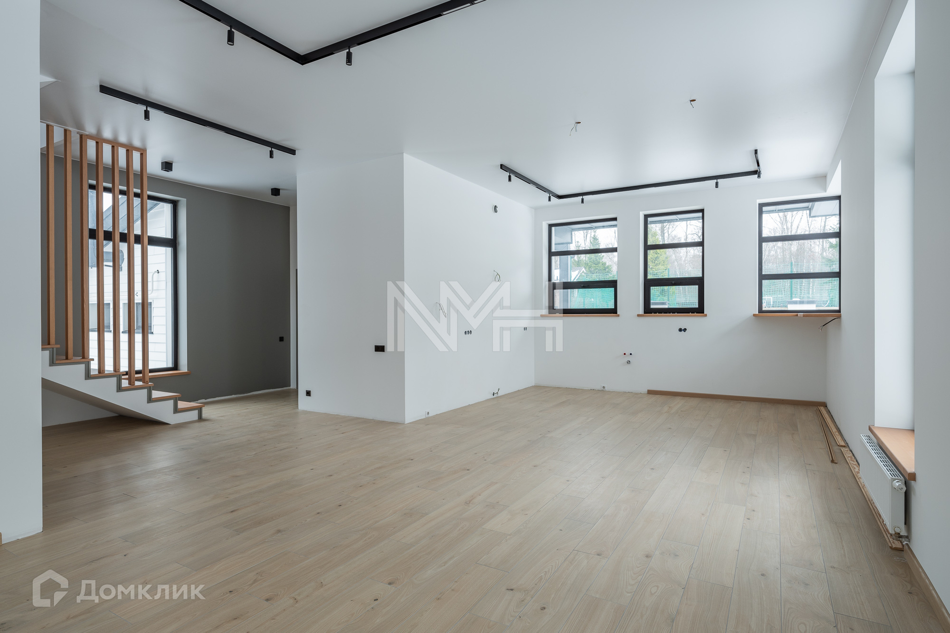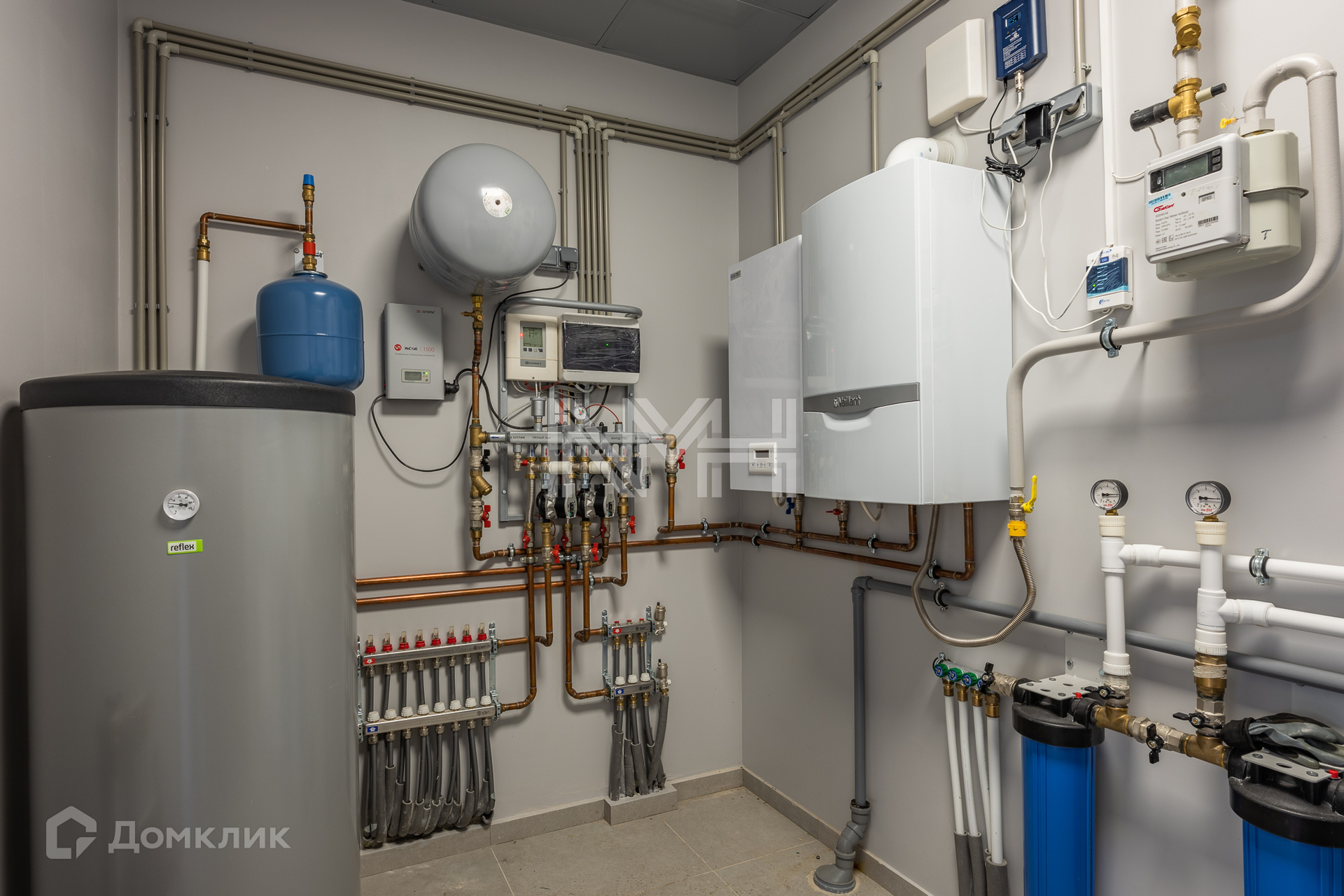 Завершена отделка: полы - керамогранит и инженерная доска; стены - оштукатурены и окрашены; лестница - массив (ясень). Полностью оборудована котельная - газовый котел Vaillant, резервный электрический котел, бойлер Reflex и установлена система очистки воды. Отопление имеет удаленное управление различных зон. Водяные теплые полы - первый этаж и с/у. Установлена система кондиционирования.