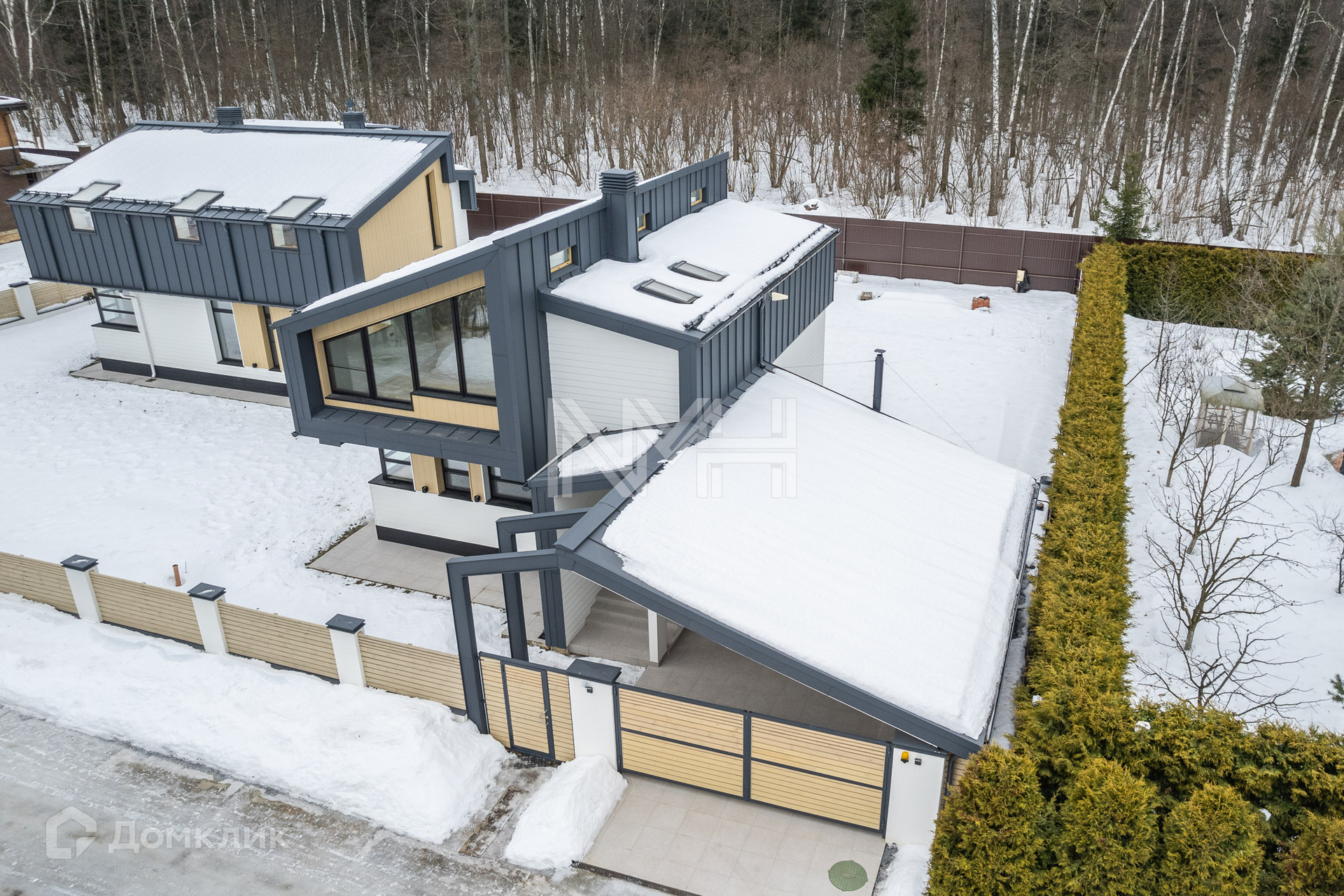 Фундамент - свайно-ростверковый; перекрытия - ж/б плиты, стены - газоблок (Бонолит); фасад - фиброцементные панели (Cedral); лестница - монолит; кровля фальцевая (Финляндия).