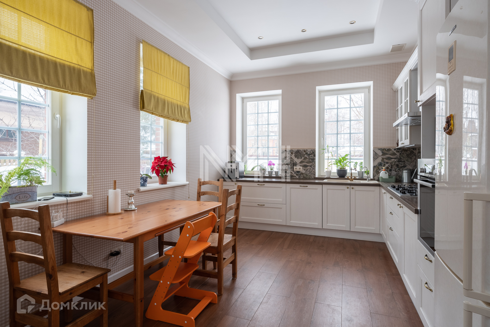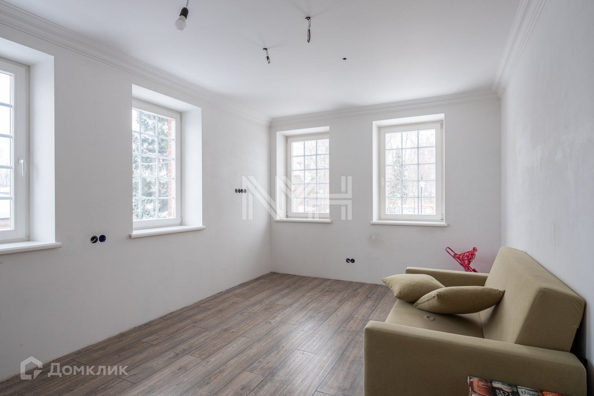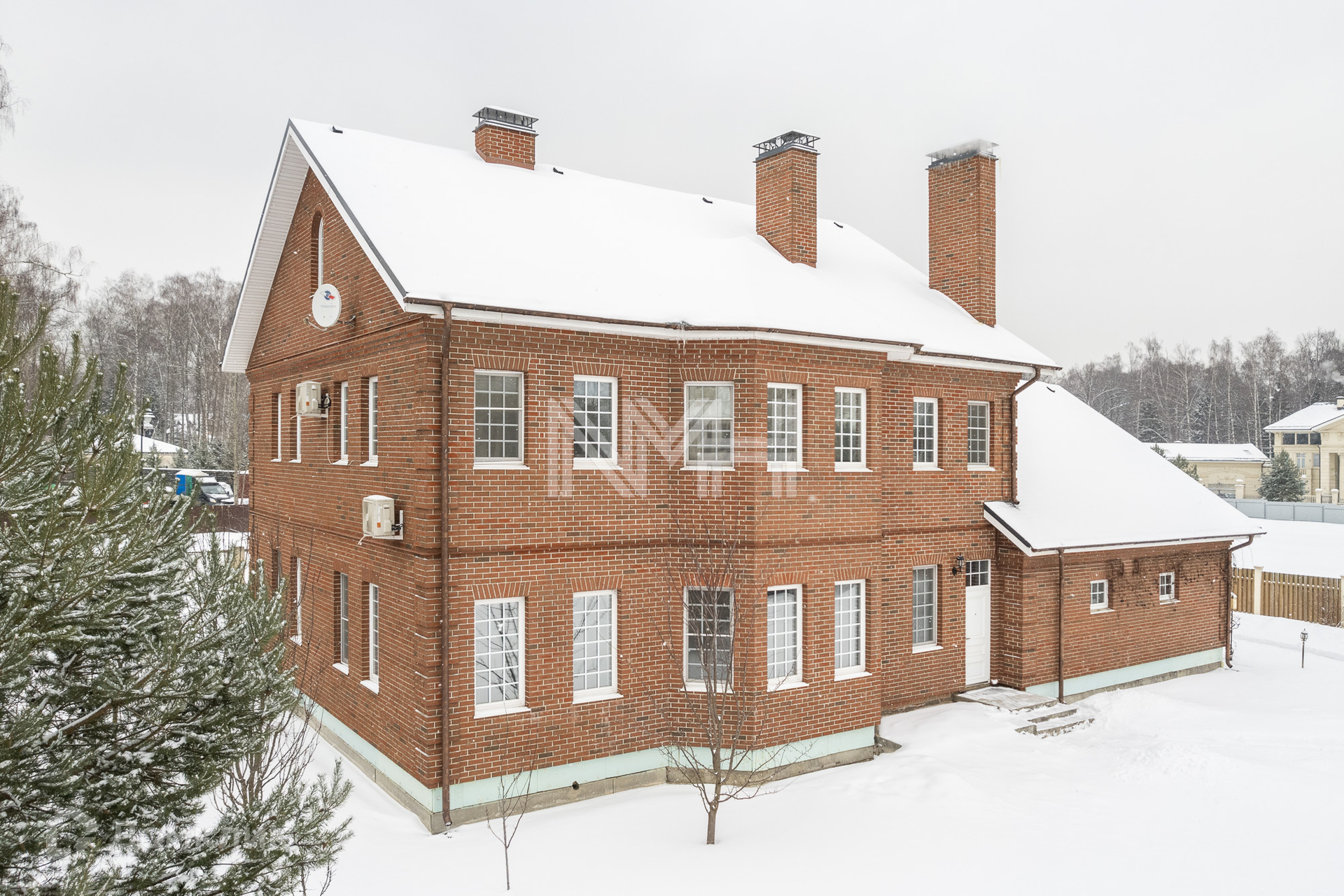 Фундамент: лента, ростверк, монолит. Стены: поризованный кирпич, утеплитель, фасад - клинкерная плитка ручной формовки, кровля - мягкая черепица, перекрытия – монолитные, в гостиной проведена подготовка под камин, лестница – массив дуба, окна - двухкамерные деревянные стеклопакеты с раскладкой. Потолки разноуровневые – гипсокартон, высота потолка 3,20 м. В доме установлены кондиционеры. Ремонт требует индивидуального завершения.