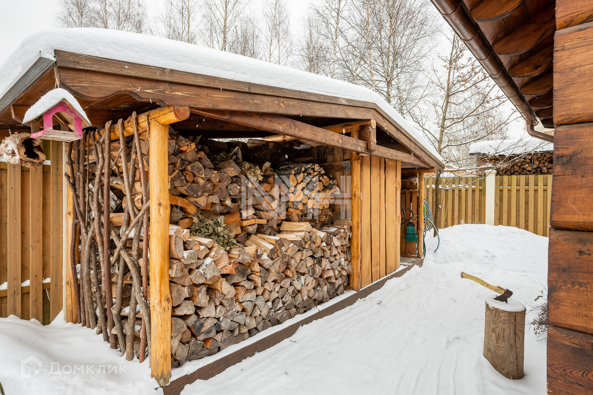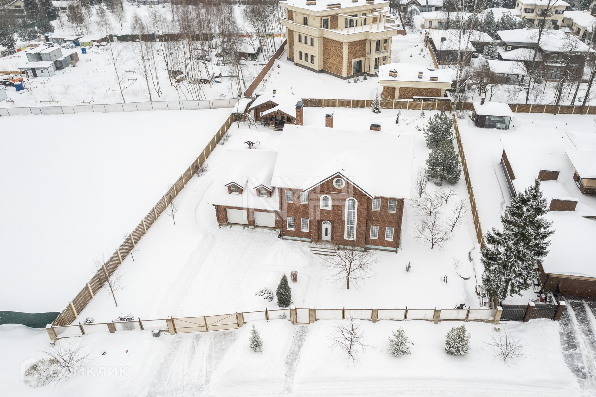 Ухоженный участок 22,06 сотки с ландшафтным дизайном, с лесными и садовыми деревьями, с трех сторон огорожен забором на бетонном основании. На участке баня в скандинавском стиле с дровяной печкой с зоной барбекю, ухоженный пруд с фильтровальной установкой (летом используется для купания), детская зона. Дорожки и парковка вымощены брусчаткой, по всему участку установлено уличное освещение и автоматическая система полива.