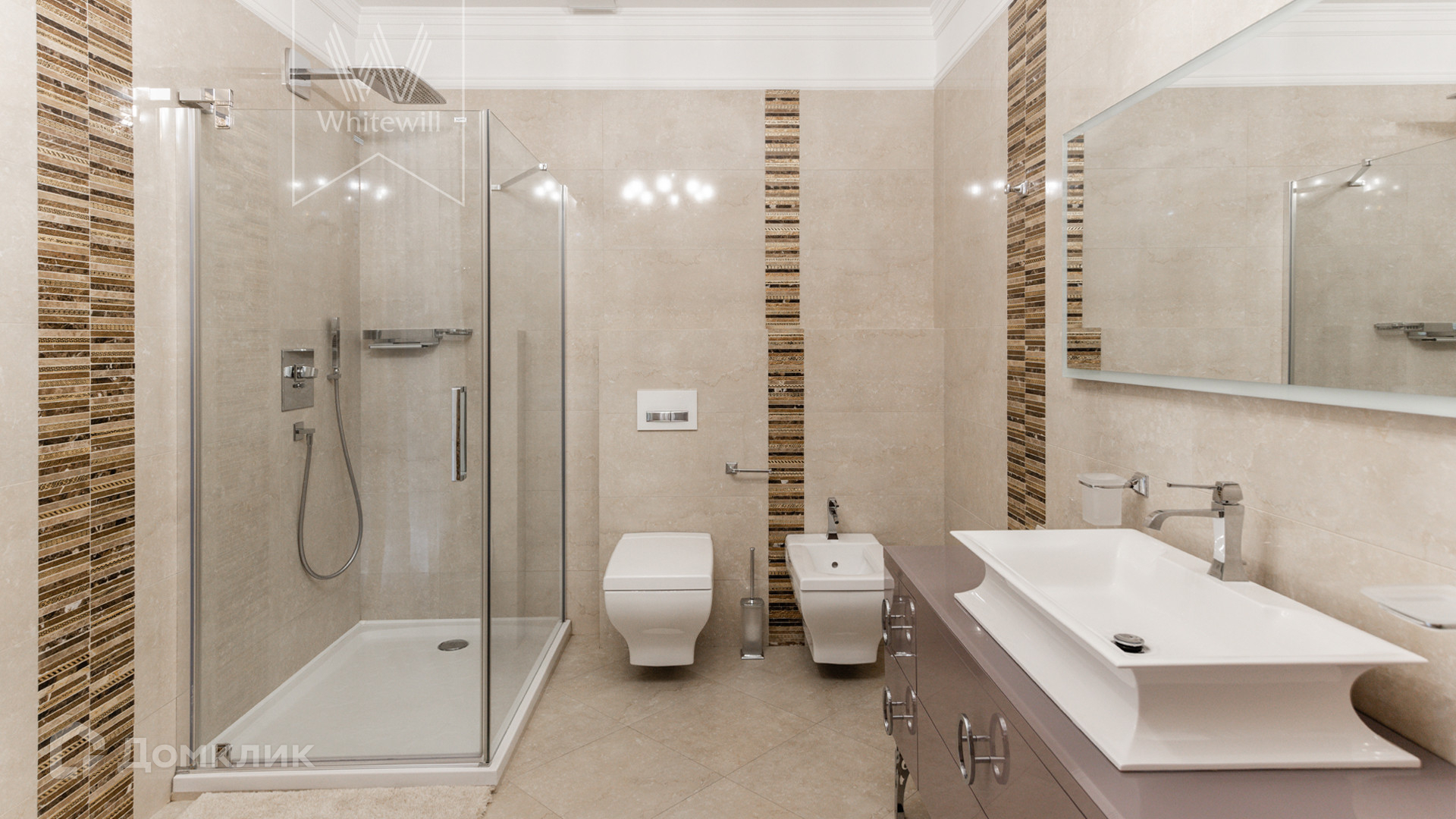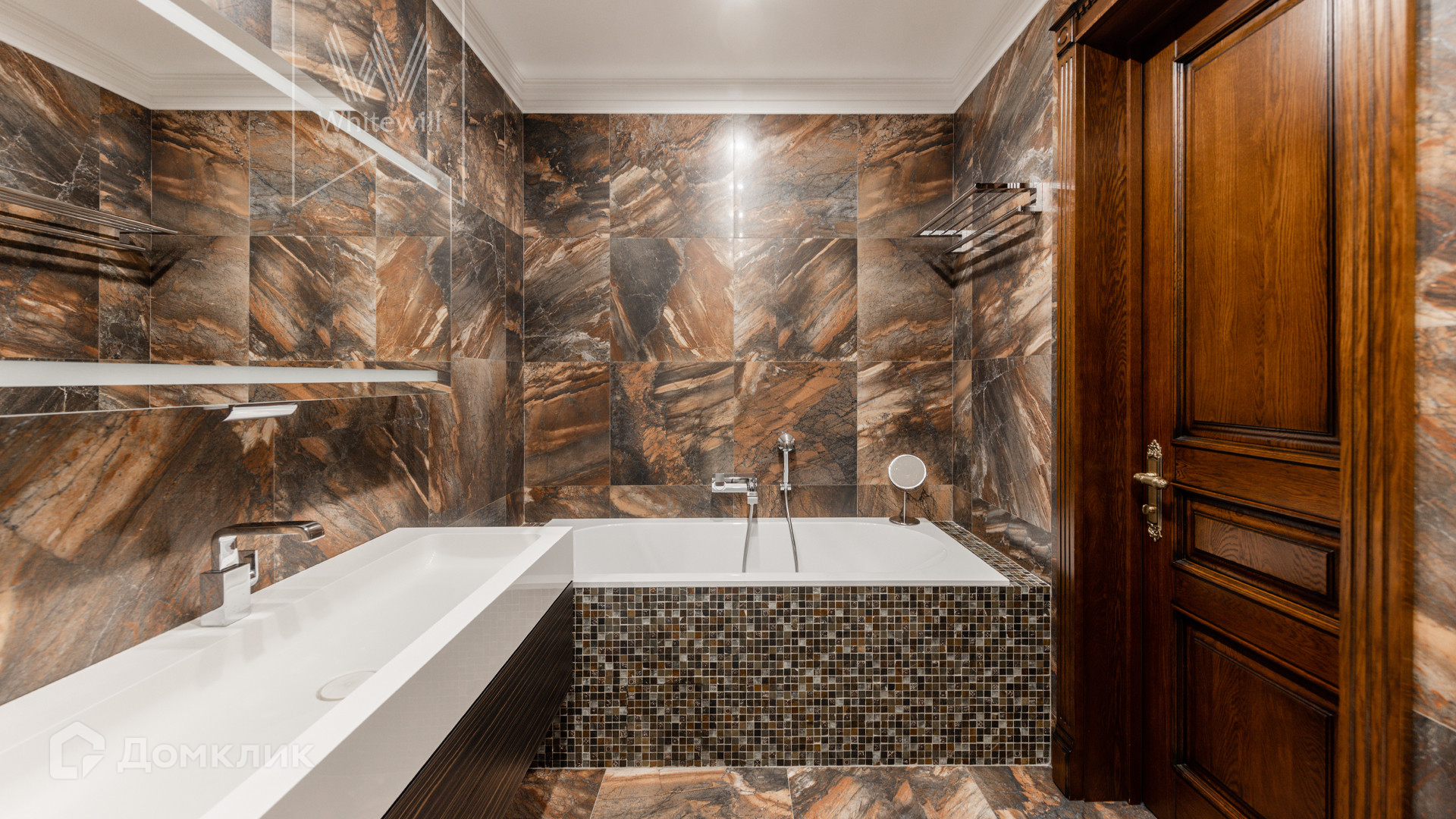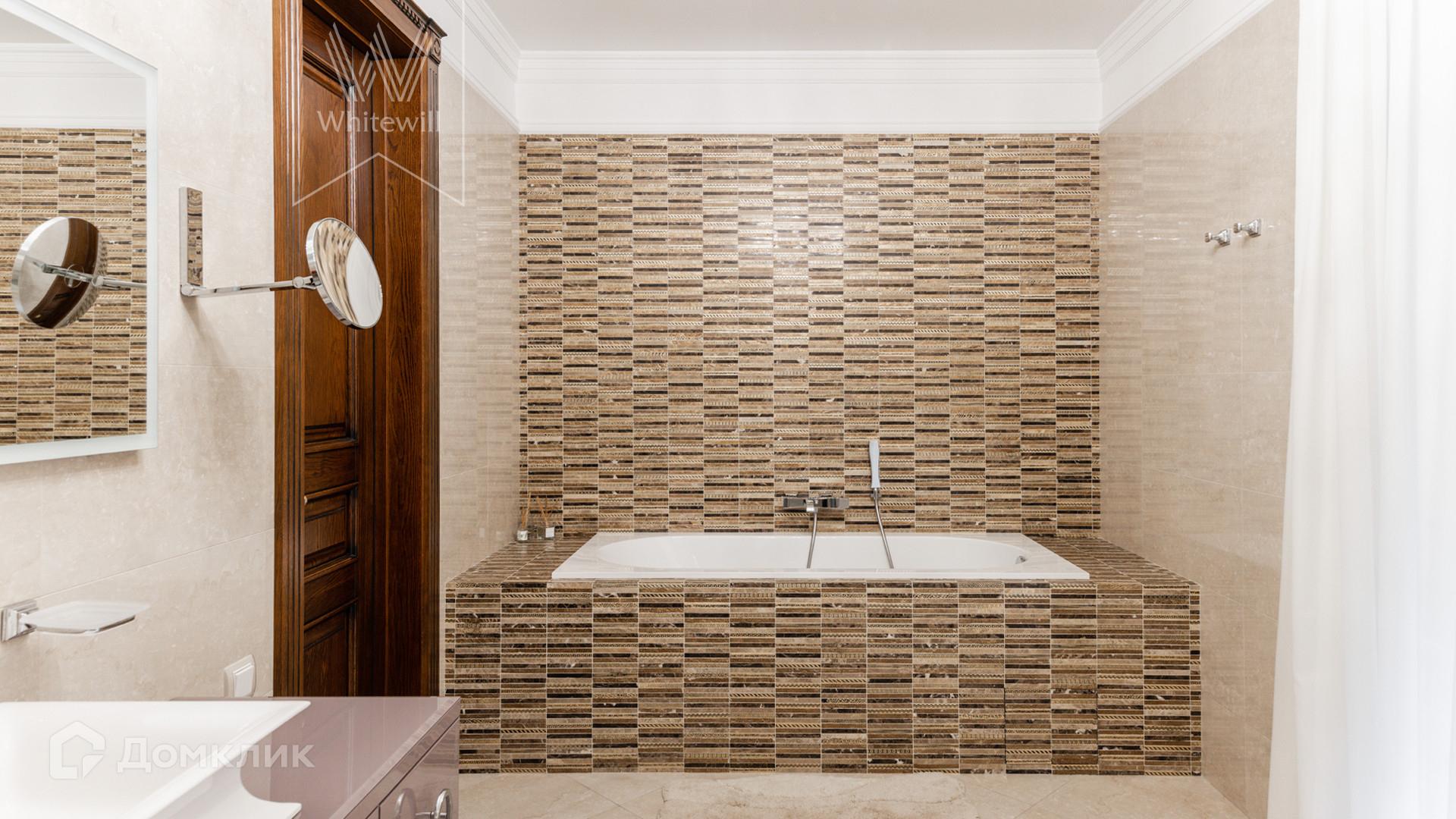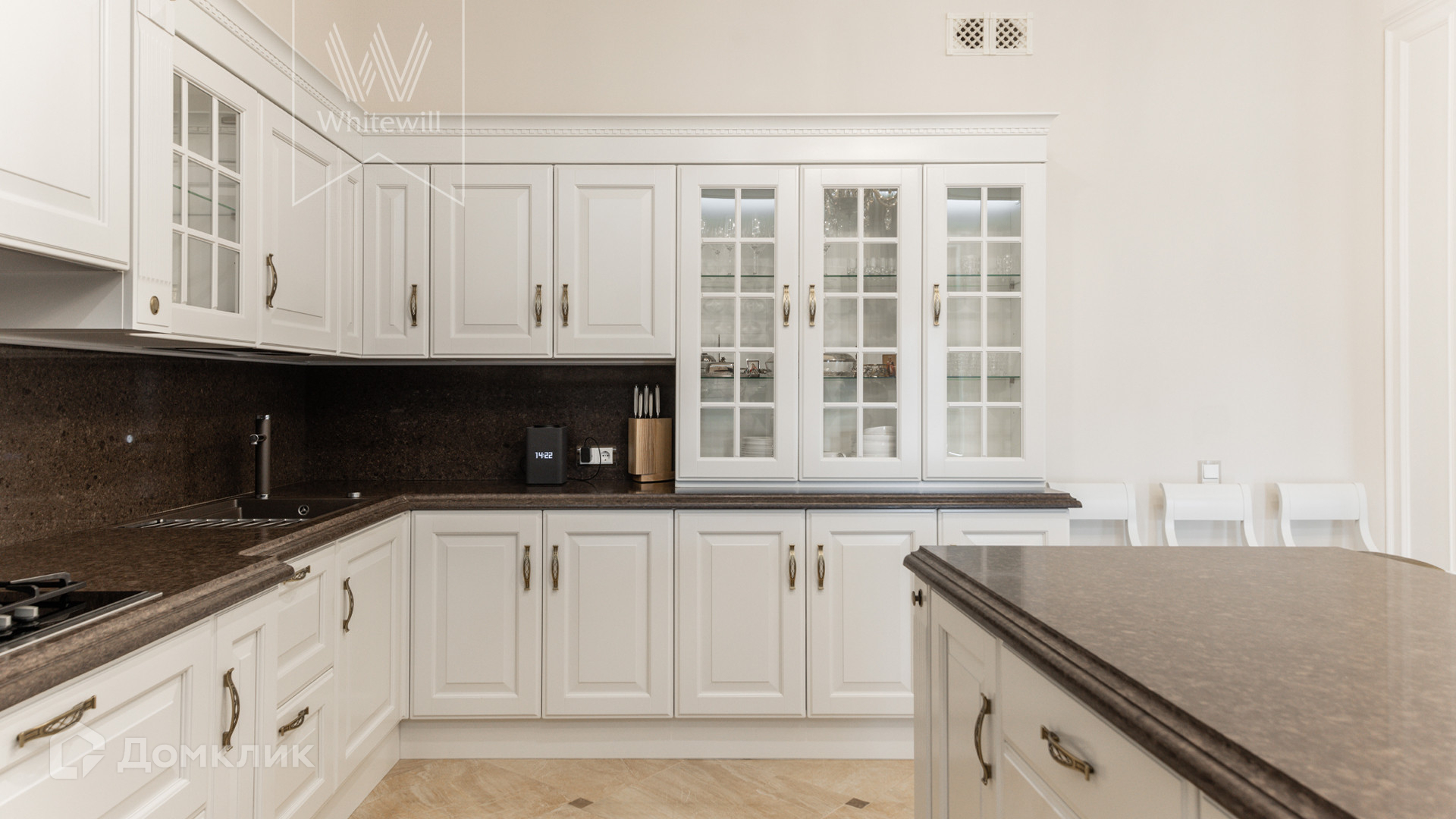 ID 11 549. Антоновка. Просторная загородная резиденция площадью 950 м² расположена на полевом участке 20,9 соток. Светлый фасад облицован натуральным дагестанским камнем, декорирован красно-коричневым клинкером по цоколю, колоннами, резными и коваными элементами. Интерьер в теплых оттенках сочетает элементы классики и современности. Дом укомплектован бытовой техникой Neff и Siemens. В коттедже разместили 5 спален, гостиную с камином, кухню-столовую с выходом на террасу, комнату отдыха, спортзал и сауну. Предусмотрены блок для персонала и гараж на 2 машины. На участке выполнен ландшафтный дизайн, установлено уличное освещение и обустроена беседка с кухней, оборудованной печью, казаном, мангалом и барбекю, и большой столовой, и санузлом .