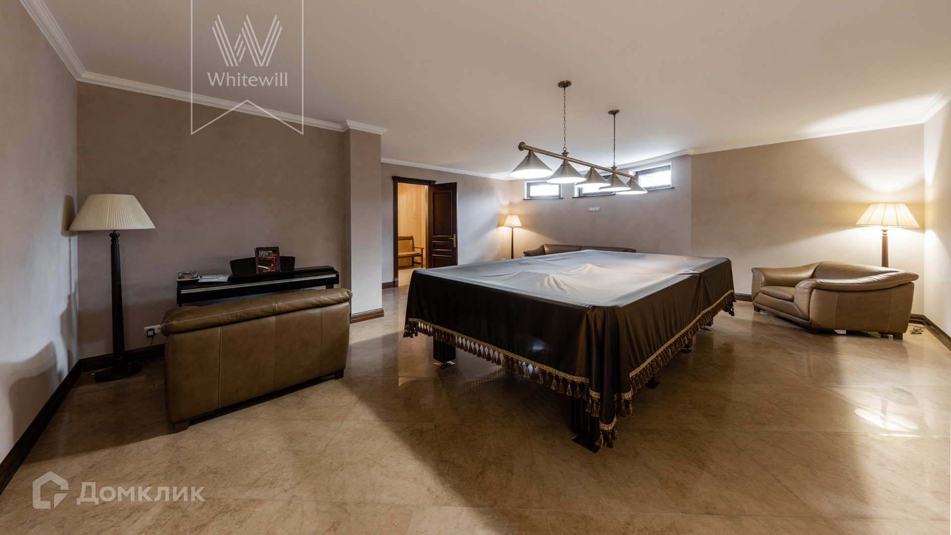 Цоколь: комната отдыха с бильярдом, сауна, санузел, душевая, спортзал, 3 складских помещения, постирочная, блок для персонала, котельная.