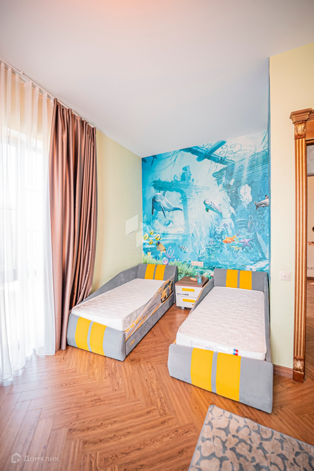 Отделка выполнена с помощью высококачественных материалов, стены мокрый шёлк (Италия), полы паркет дуб, двери масив дуба.