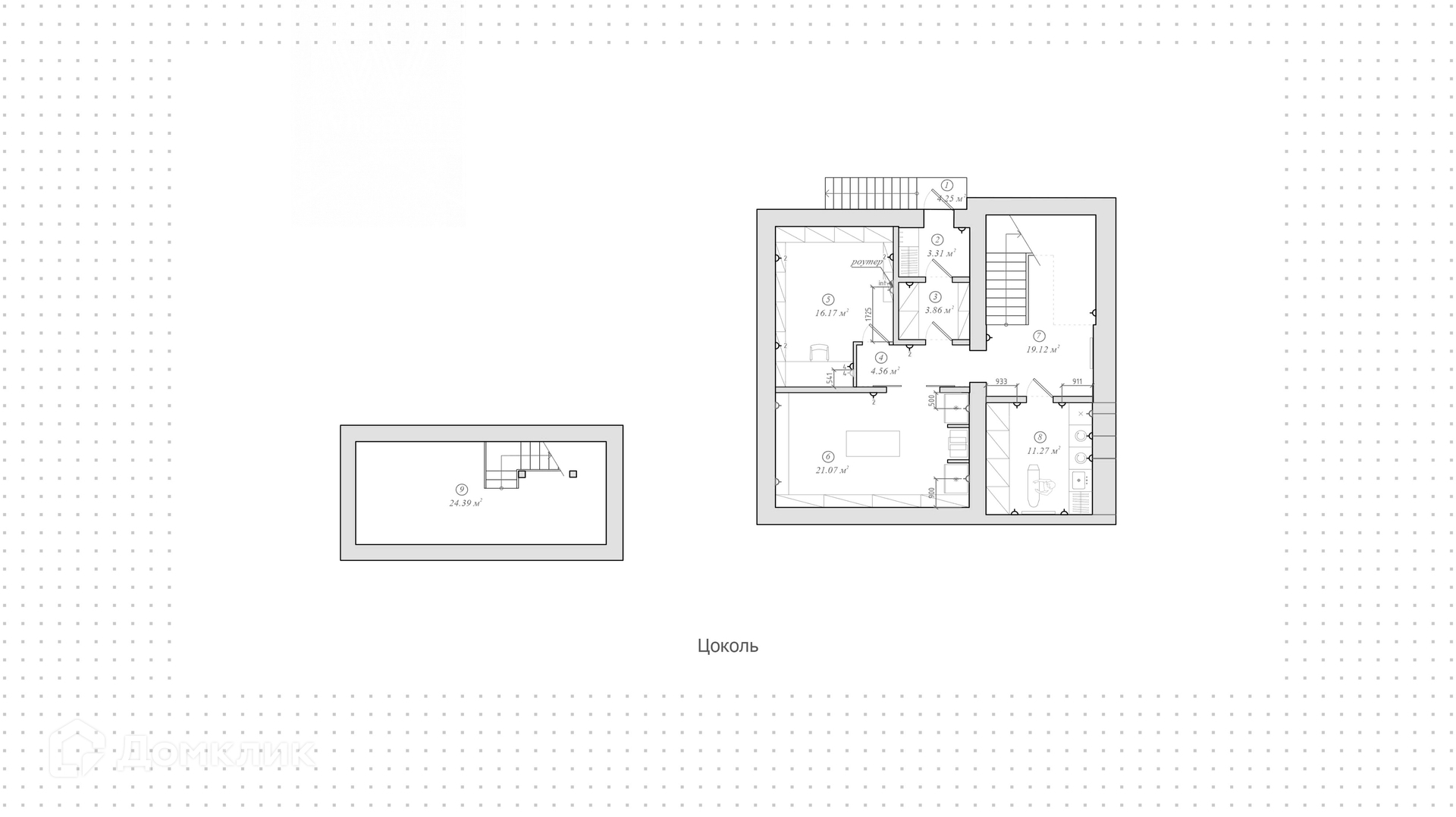 Цоколь: прихожая, кладовая, холл, оружейная комната, винный погреб, постирочная, техническое помещение.