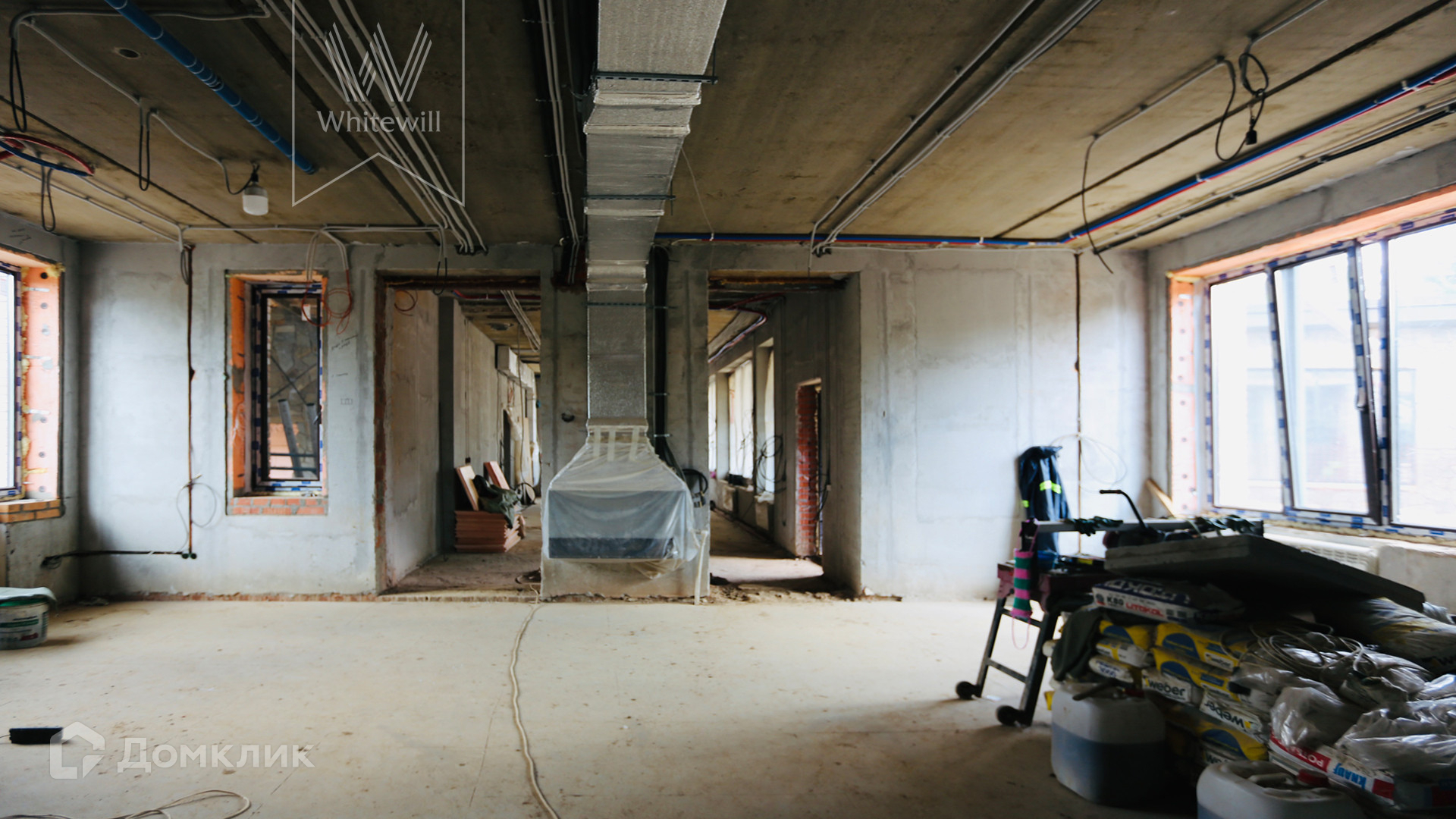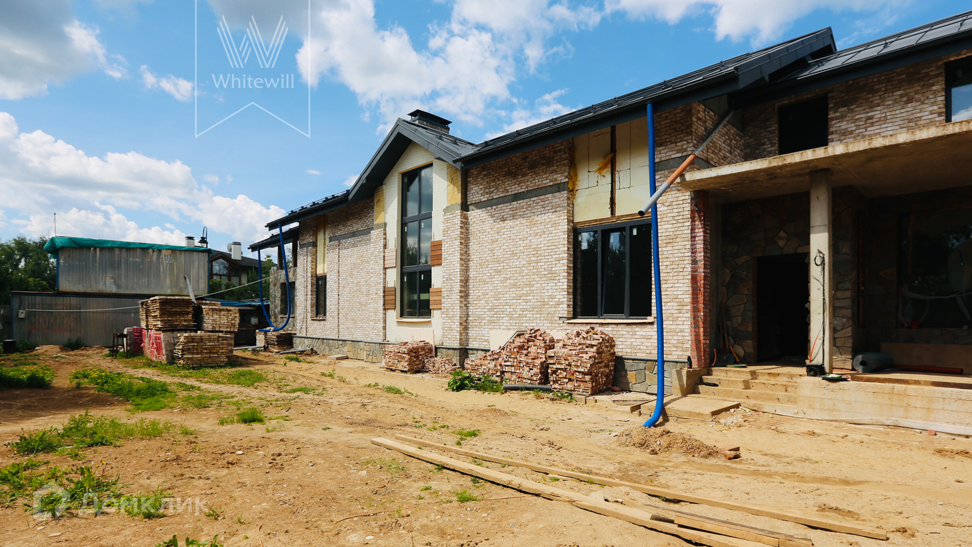 ID 11 630. Антоновка. Загородный дом площадью 656 м² расположен на полевом участке 19 соток. Фасад резиденции облицован бежевым клинкерным кирпичом. В коттедже без отделки спланировали 4 спальни, 2 гостиные, одна из которых с камином, кухню, столовую, кабинет и просторную террасу, где можно обустроить зону барбекю. Предусмотрены встроенный гараж на 2 машины и блок для персонала с отдельным входом. На участке построен SPA-комплекс площадью 296 м² с бассейном, баней, хаммамом и спортивным залом.