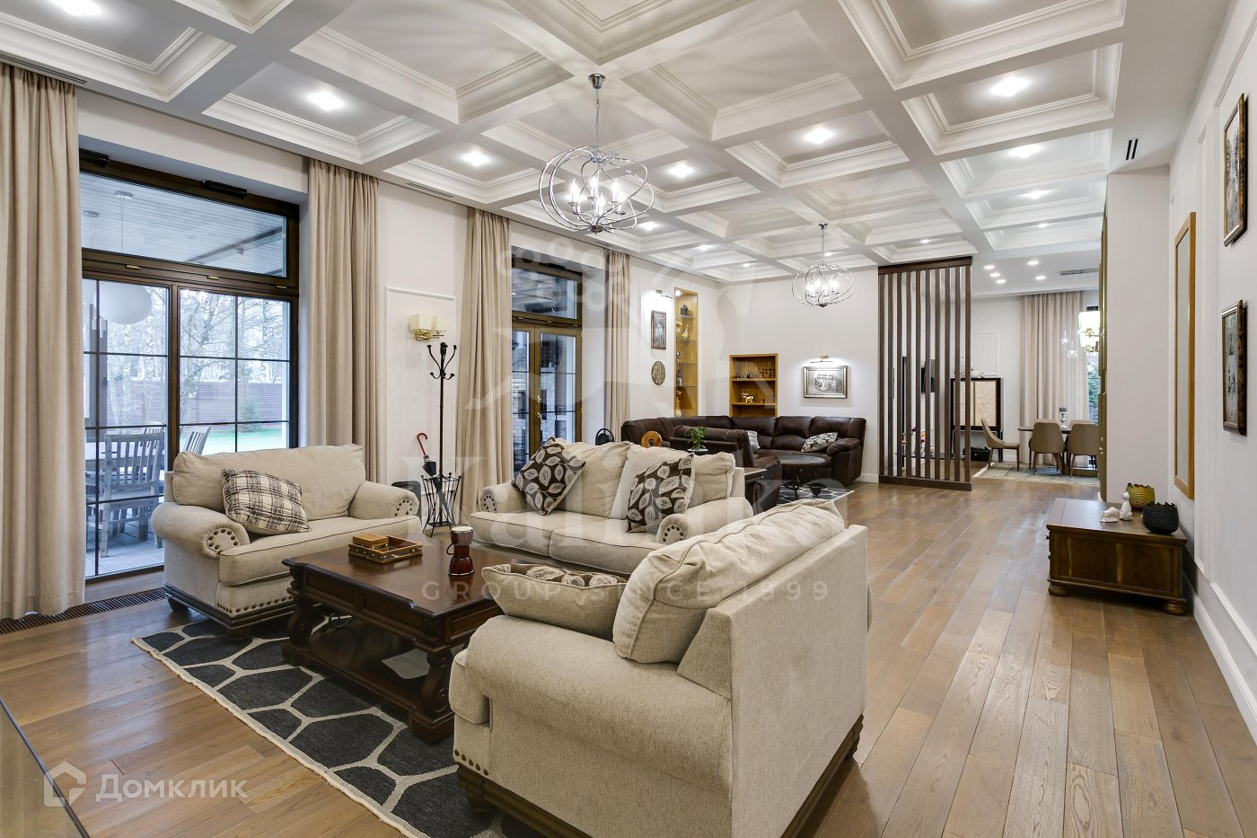 На 2-м этаже - мастер-спальня с гостиной, гардеробной и ванной комнатами, две спальни со своими  ванными и гардеробными комнатами.