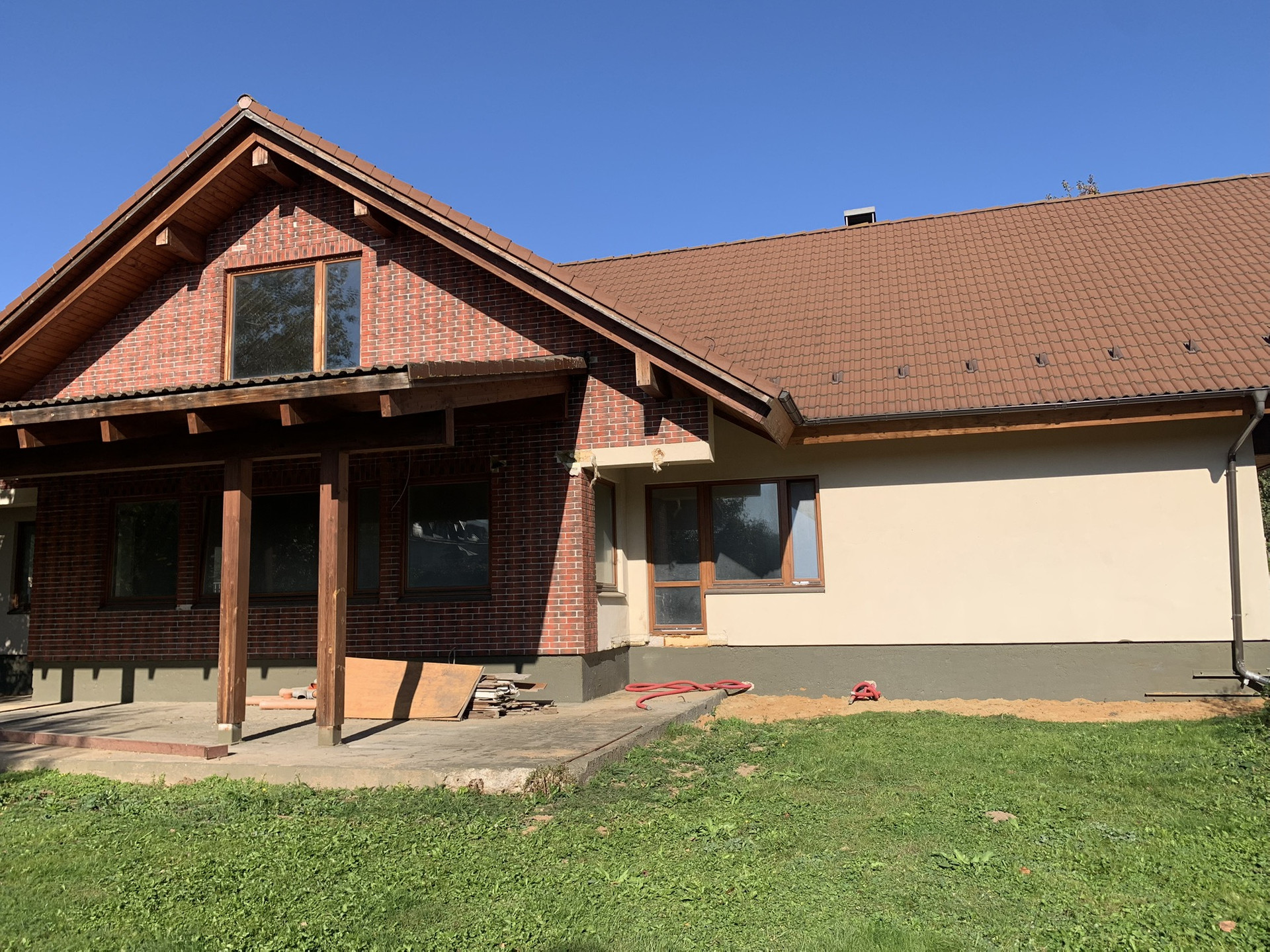 Дом без внутренней отделки. Построен из качественных материалов. Все коммуникации заведены, в т.ч. отопление. К дому прилагается индивидуальный проект, где предусмотрены 4 спальни со своими с/ у, гостиная, кухня-столовая, гардеробные, гараж и многое другое.