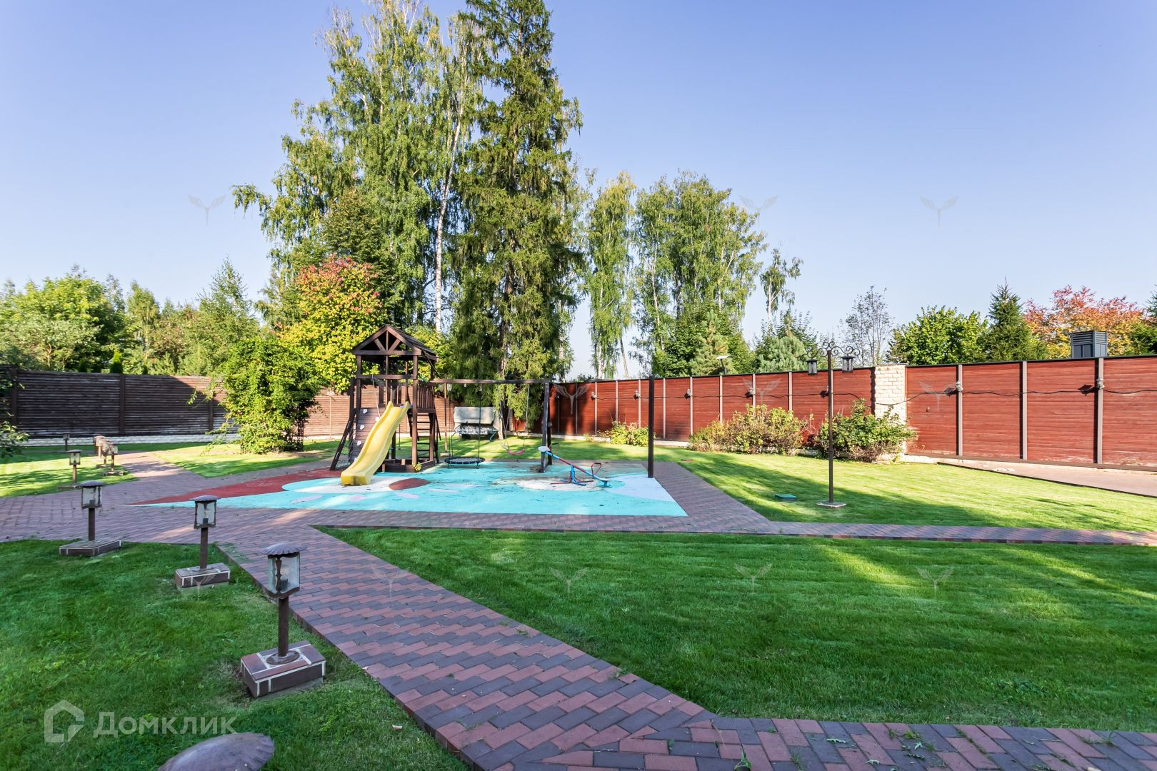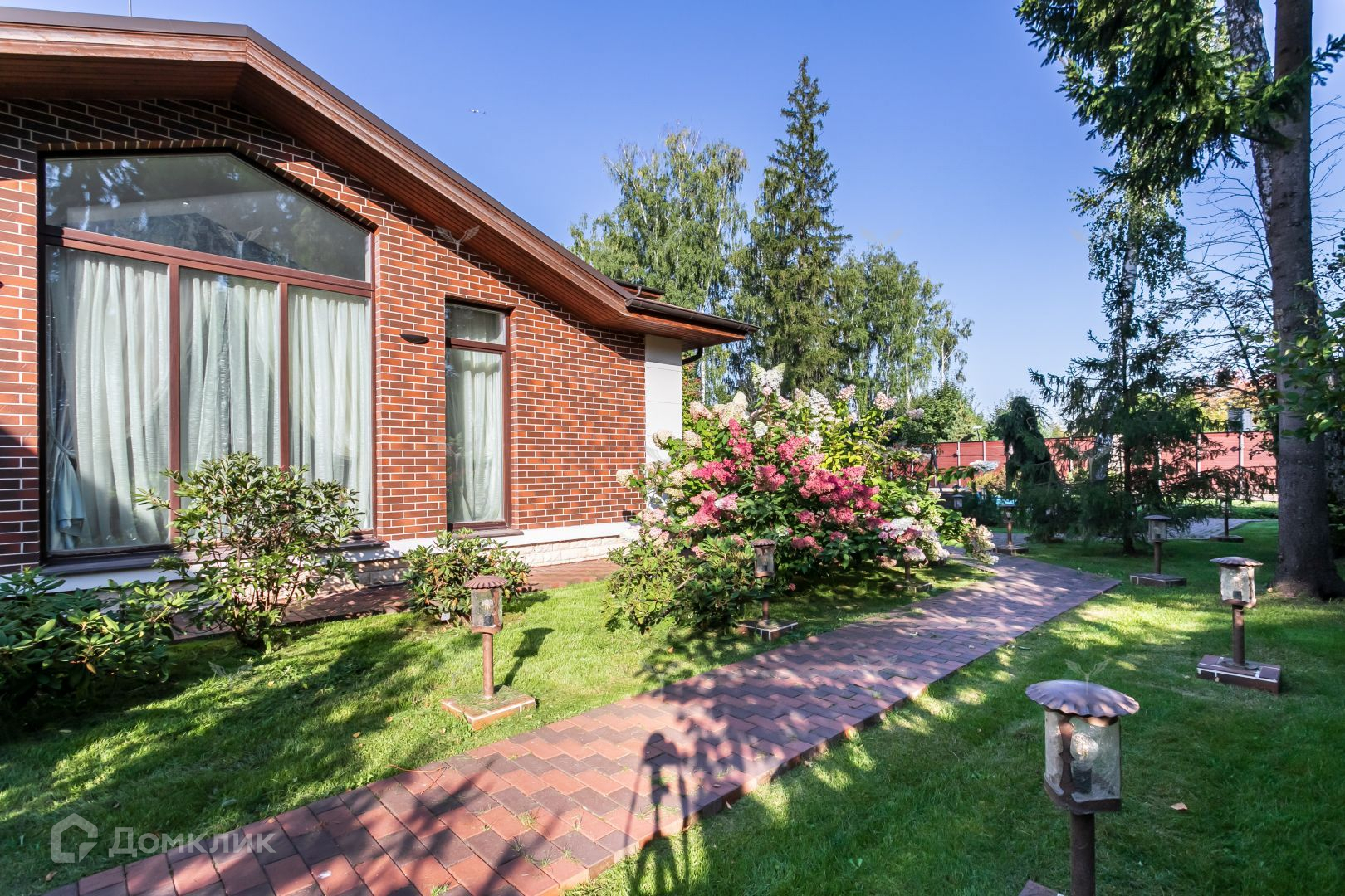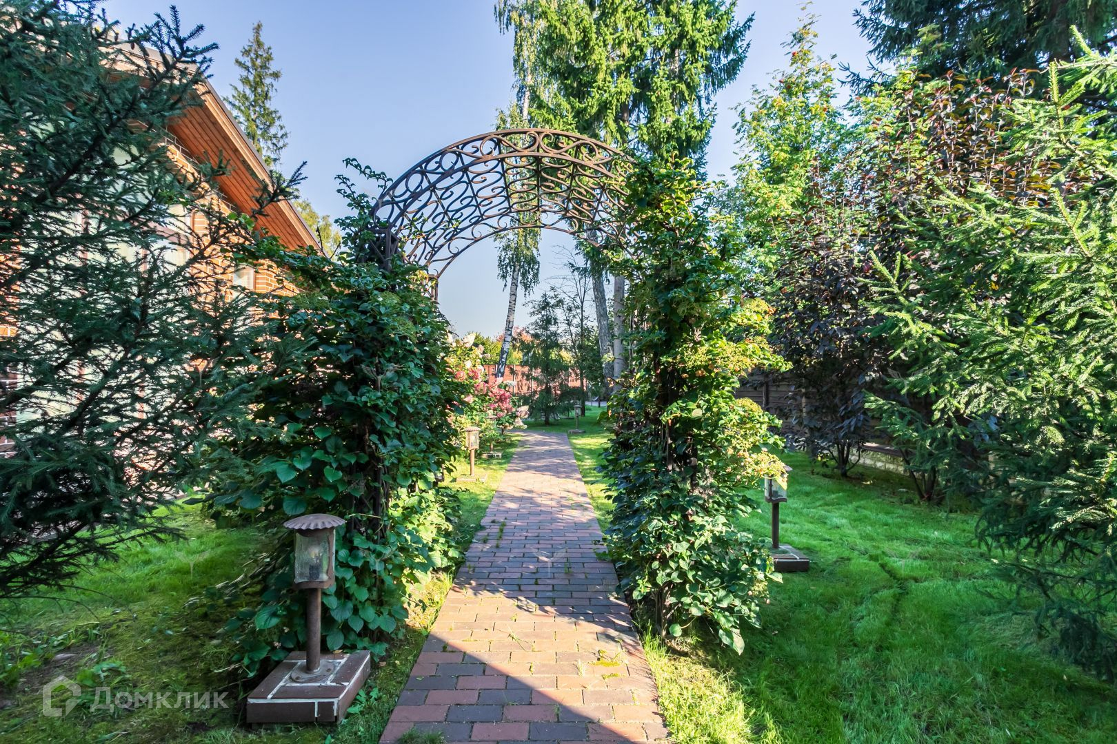 Участок дома отличается исключительным ландшафтным дизайном. Партерные газоны, взрослые деревья и кустарники создают атмосферу уюта и спокойствия. Автоматизированная система полива и освещения дополняют этот оазис комфорта. Тропинки и дорожки вымощены гранитом и клинкером, подчеркивая статус этого объекта.