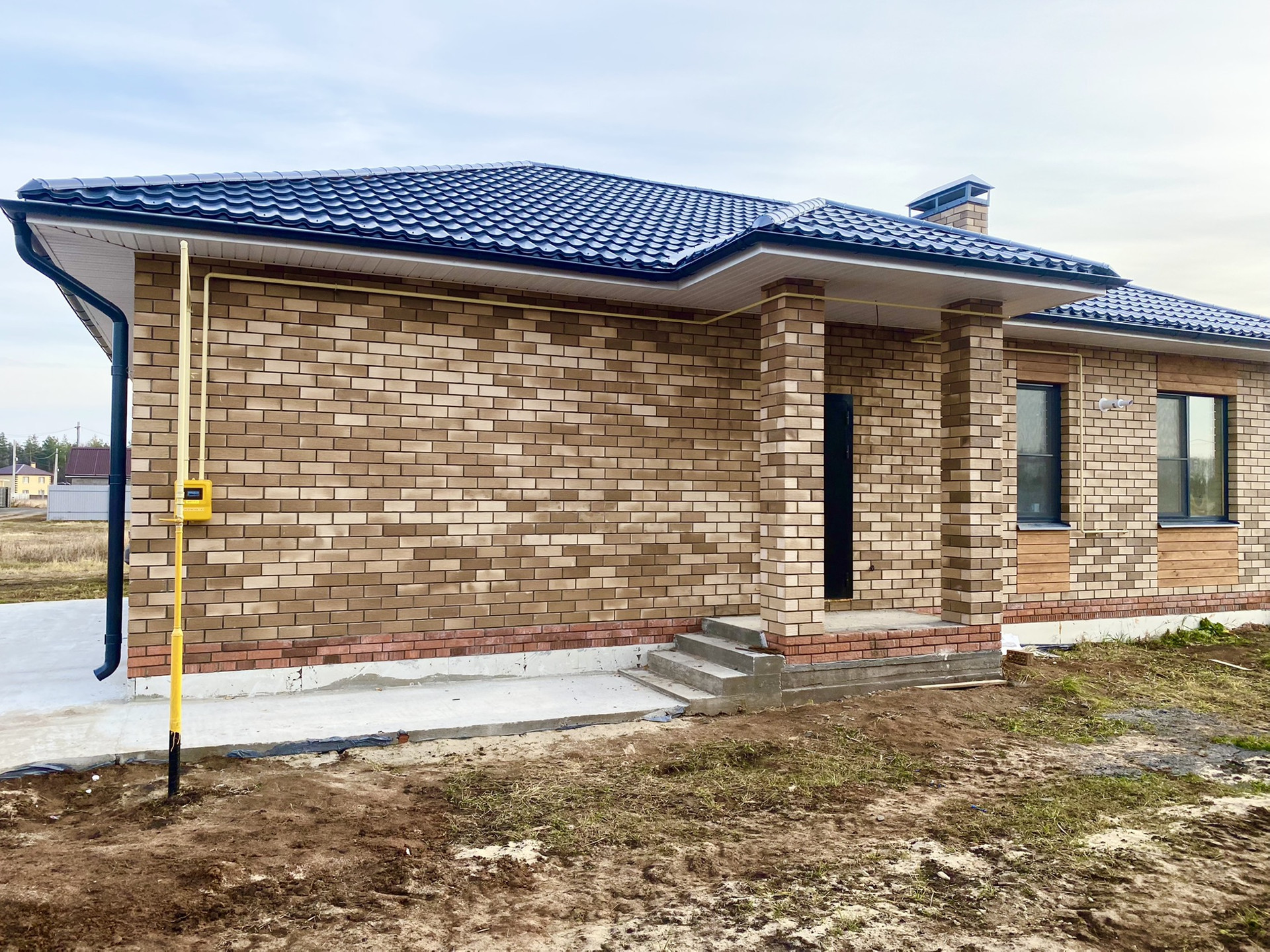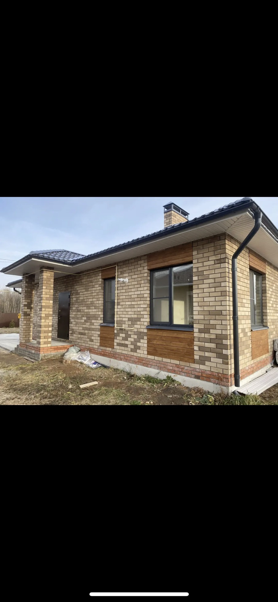 В доме большая кухня-гостиная, 3 спальни, ванная комната, котельная и широкий коридор.