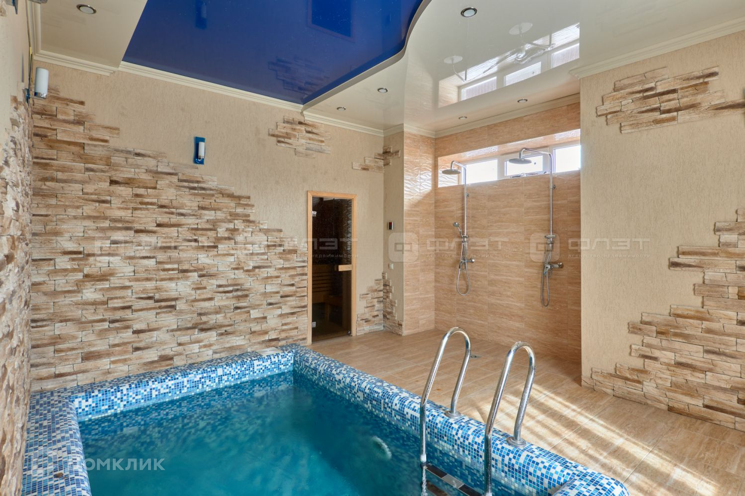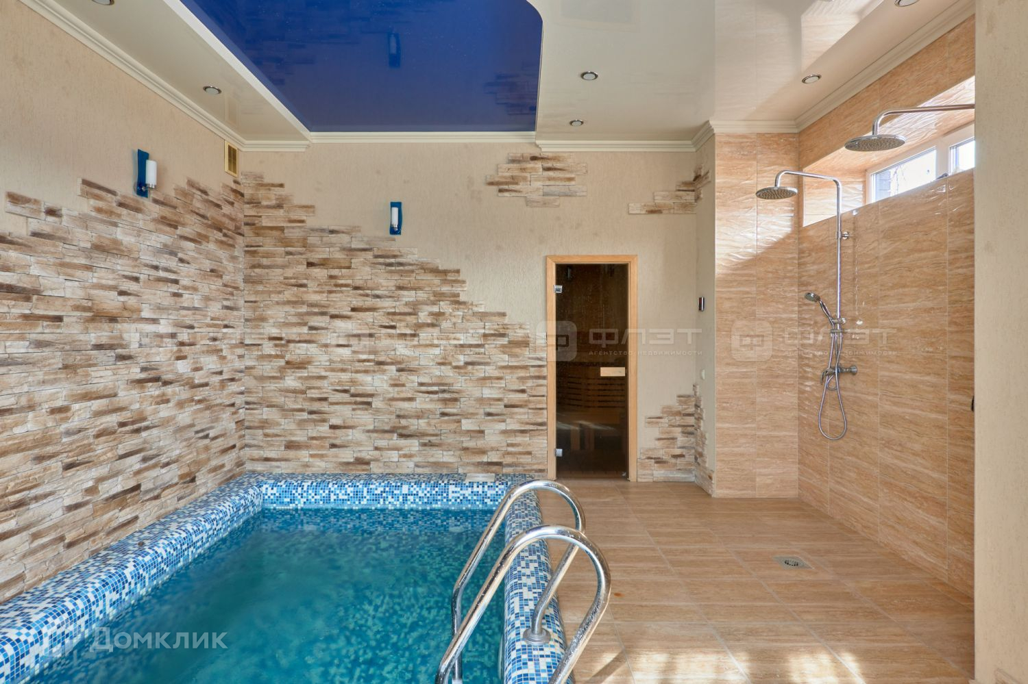 На первом этаже сауна с бассейном (3,5*2,5 м.) со своей системой очистки.