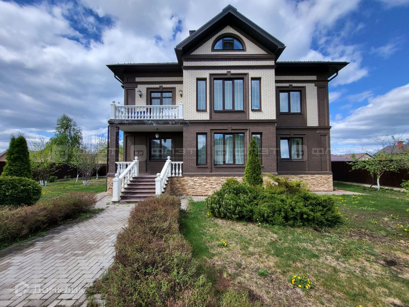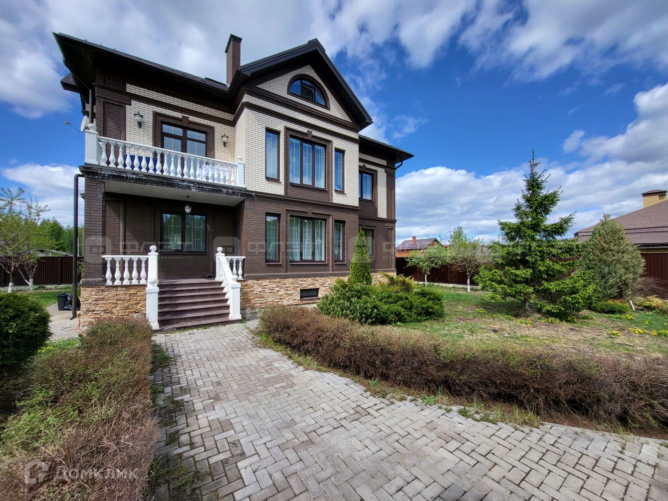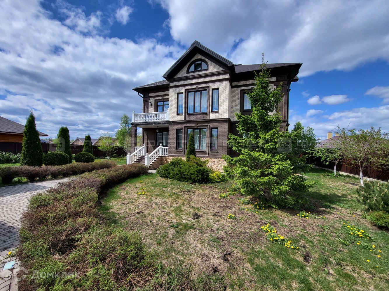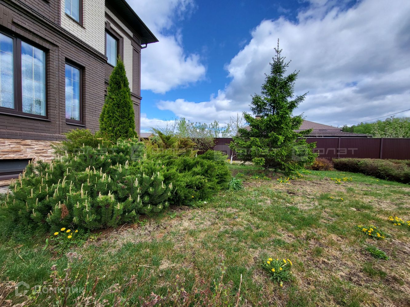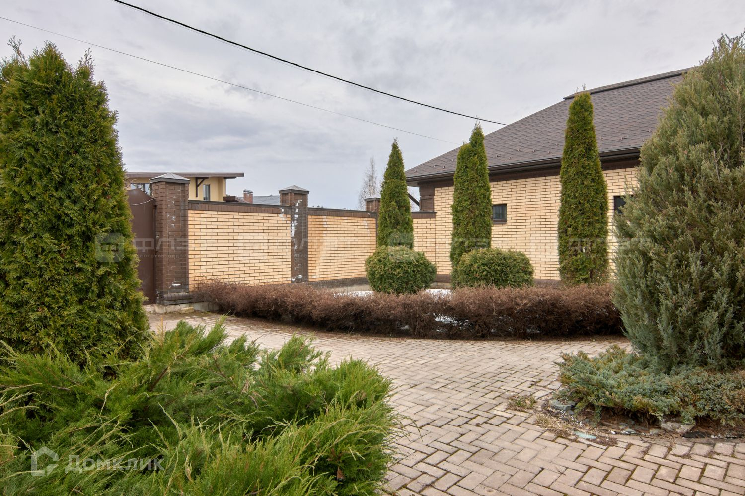 По периметру дома, красивый кирпичный забор.