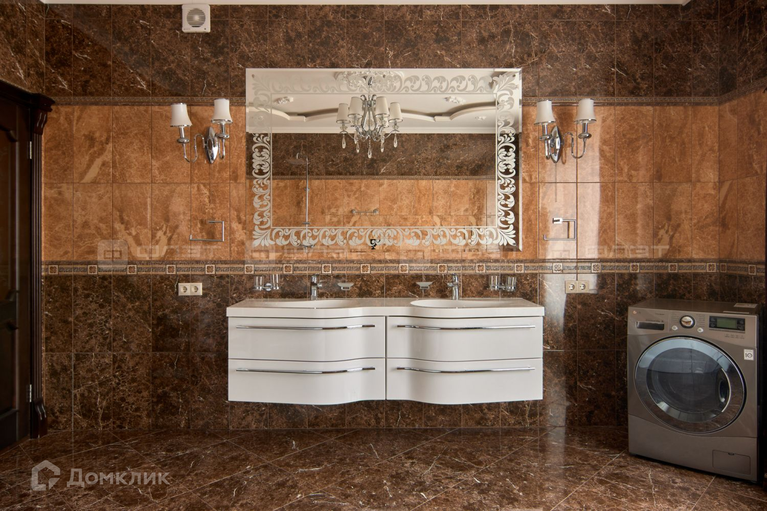 В комнатах ещё два телевизора такой же диагонали, стиральная машина на 12 кг, стиральная машина на 8 кг.