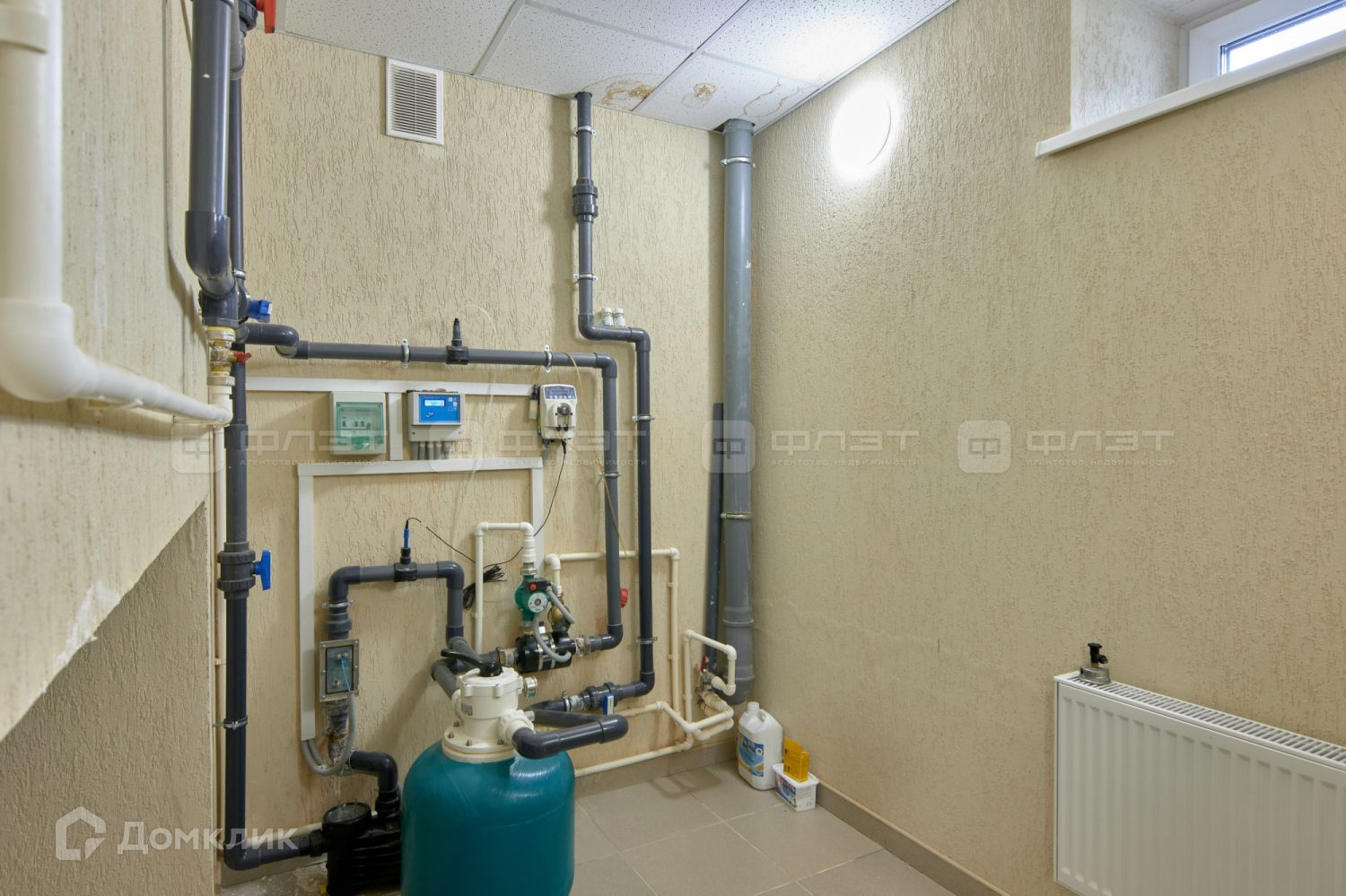 бойлер на 300 литров, трёхступенчатая система очистки воды, а также система очистки для бассейна.