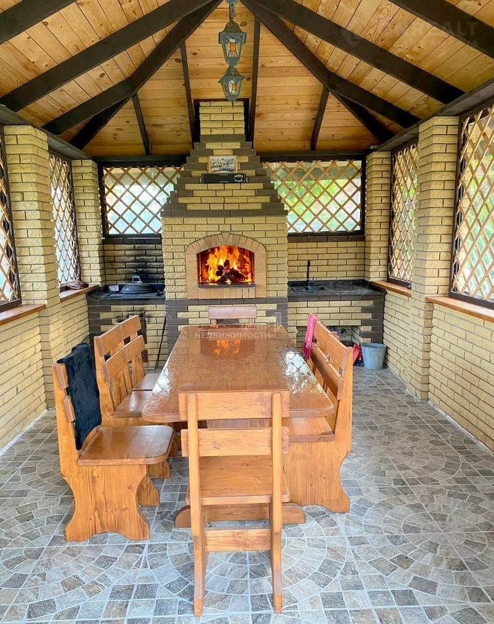 На участке также построена просторная утепленная беседка с мангальным комплексом и летней кухней, где можно собираться большой семьёй и проводить мероприятия