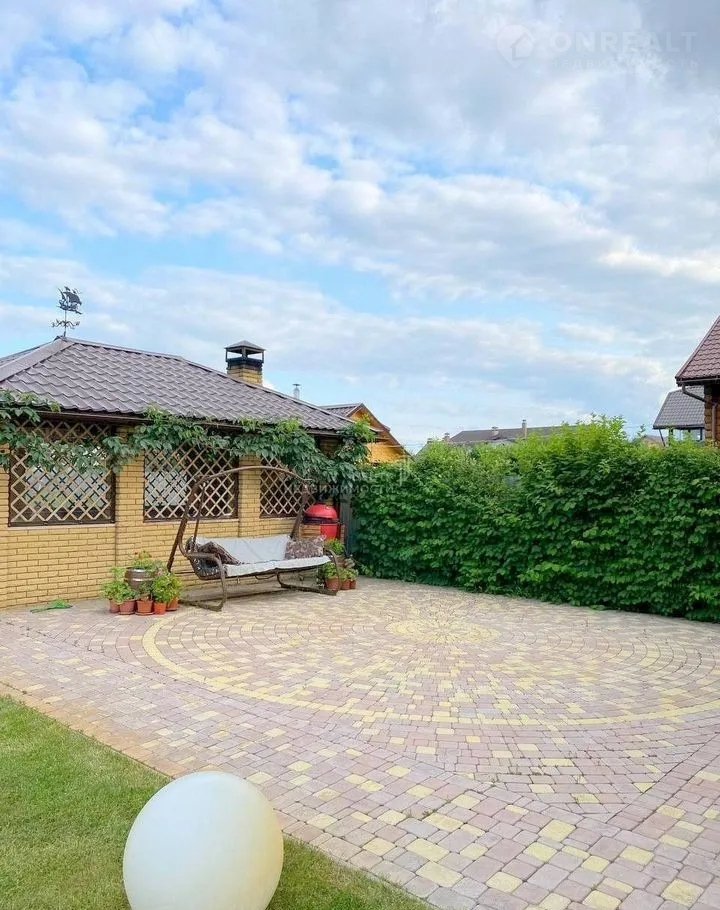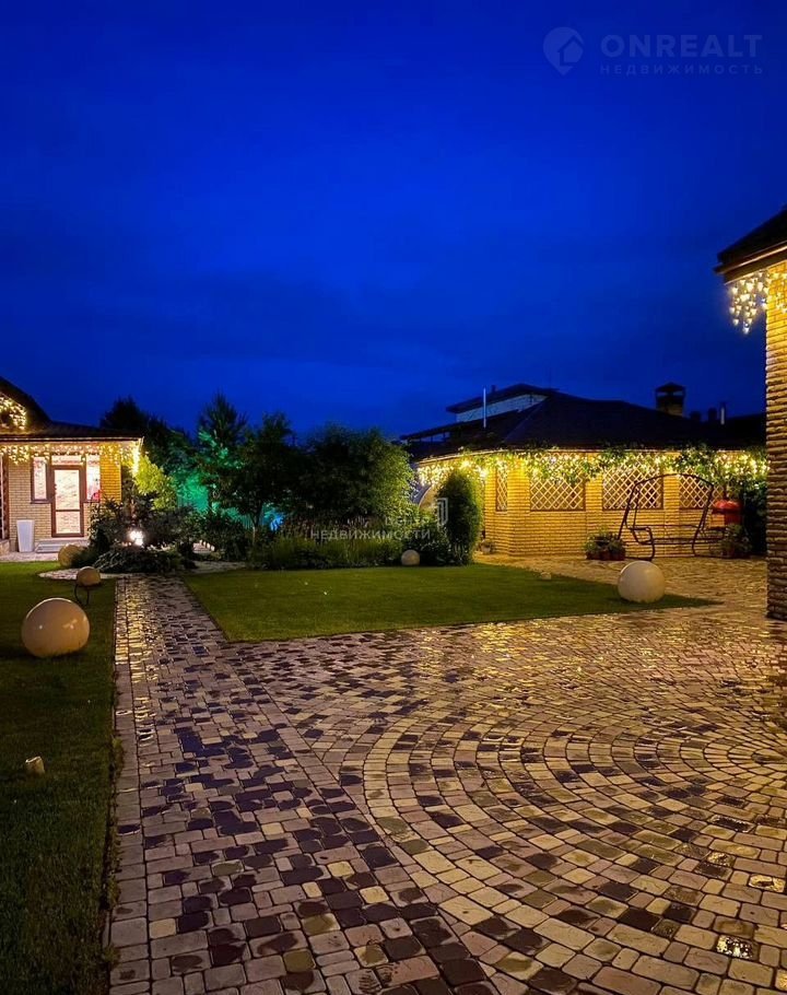 Парковка, дорожки и отмостка выполнены в мощении брусчаткой с основанием из монолита