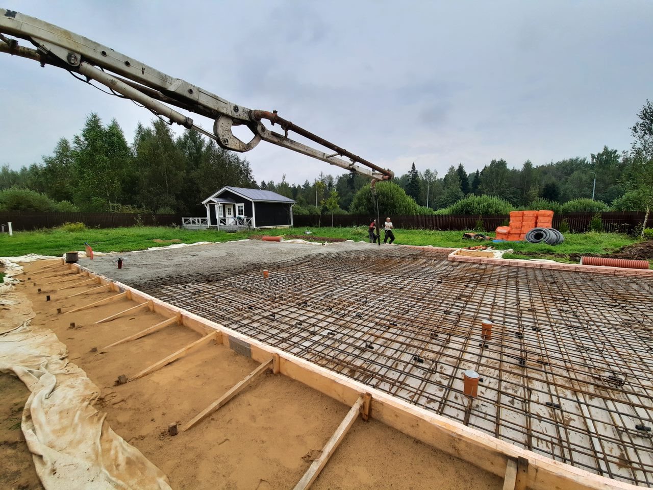 фундамент - ж/б плита 200 мм с обустройством дренажа по периметру, отмостки и системы сбора и отвода ливневых вод;