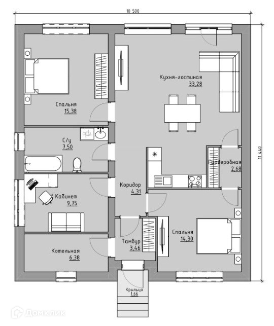 Продается новый ДОМ С ГАРАЖОМ от застройщика в с. Зинино, общей площадью 105 кв.м., на участке 9,0 соток.
