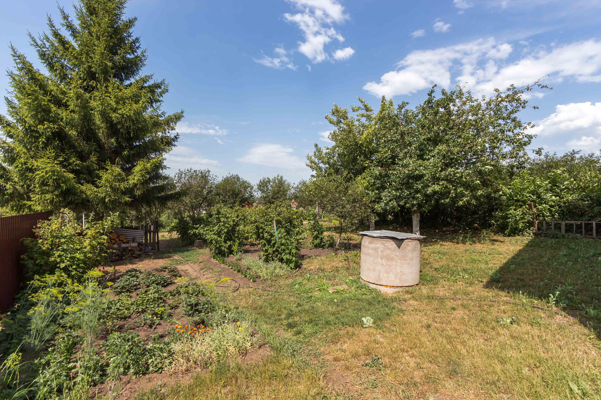 На участке имеется вишневый сад, большая ель, различные насаждения. Соседи хорошие. Можно поставить баню на берегу пруда.