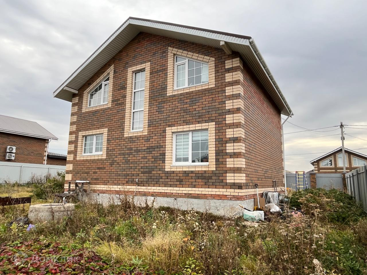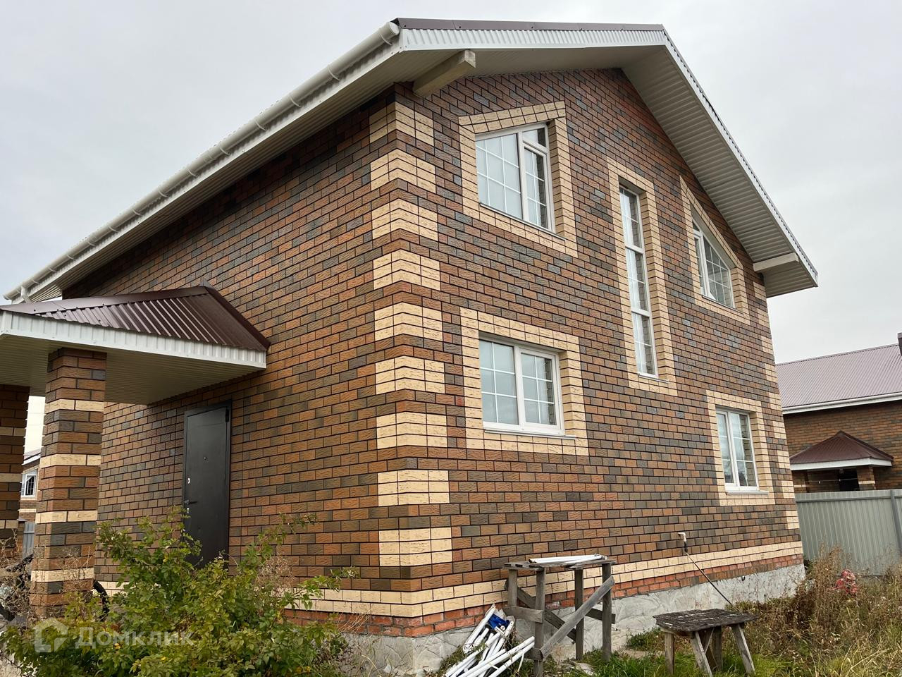 Дом выполнен из керамзитного блока + облицован кирпичом, плиты перекрытия между этажами, монолитная лестница.