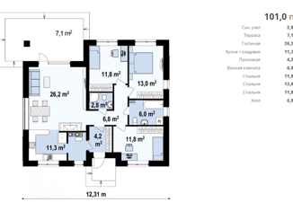 Общая площадь: 101 м2