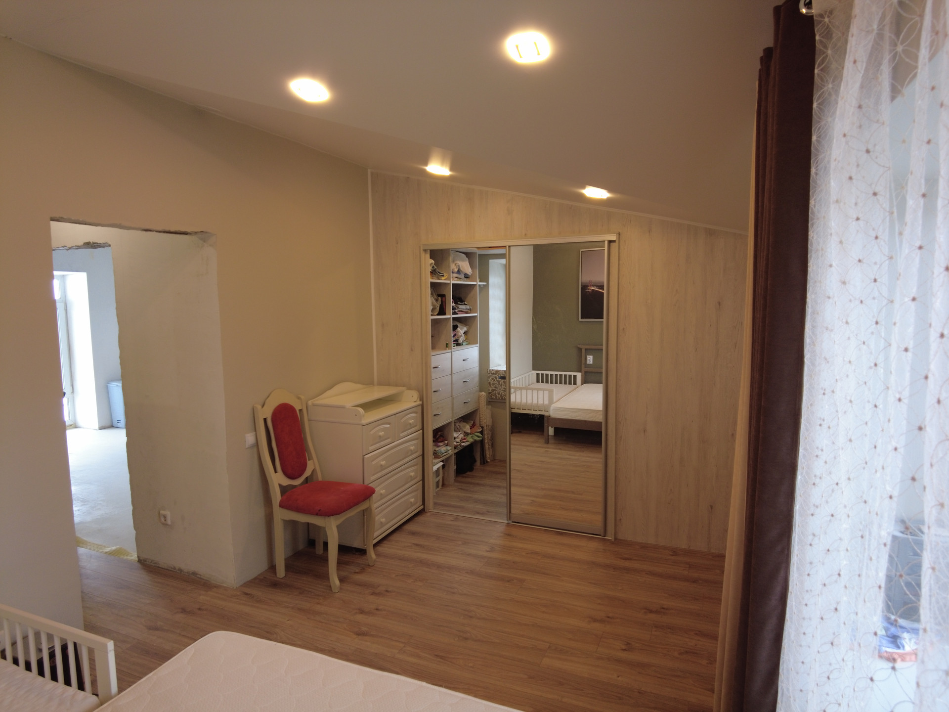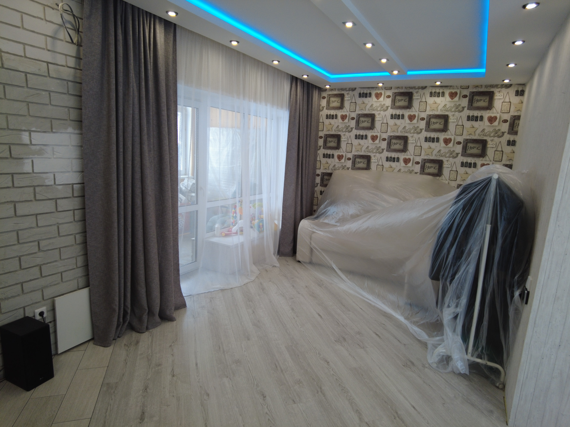 1 этаж: кухня- гостинная, сан.узел, балкон (утеплен, теплый пол)