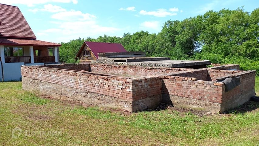 Фундамент готовый ленточный площадью 11*12, пристрой 2,20*4,40. Поднят на плиты и красный полнотелый кирпич. Сверху наполовину закрыт плитами перекрытия, на вторую половину плиты 5 шт.лежат сверху фундамента. Ширина фундамента 70 см. Имеется 6 листов профнастила 6-ти метровых и металлические уголки.