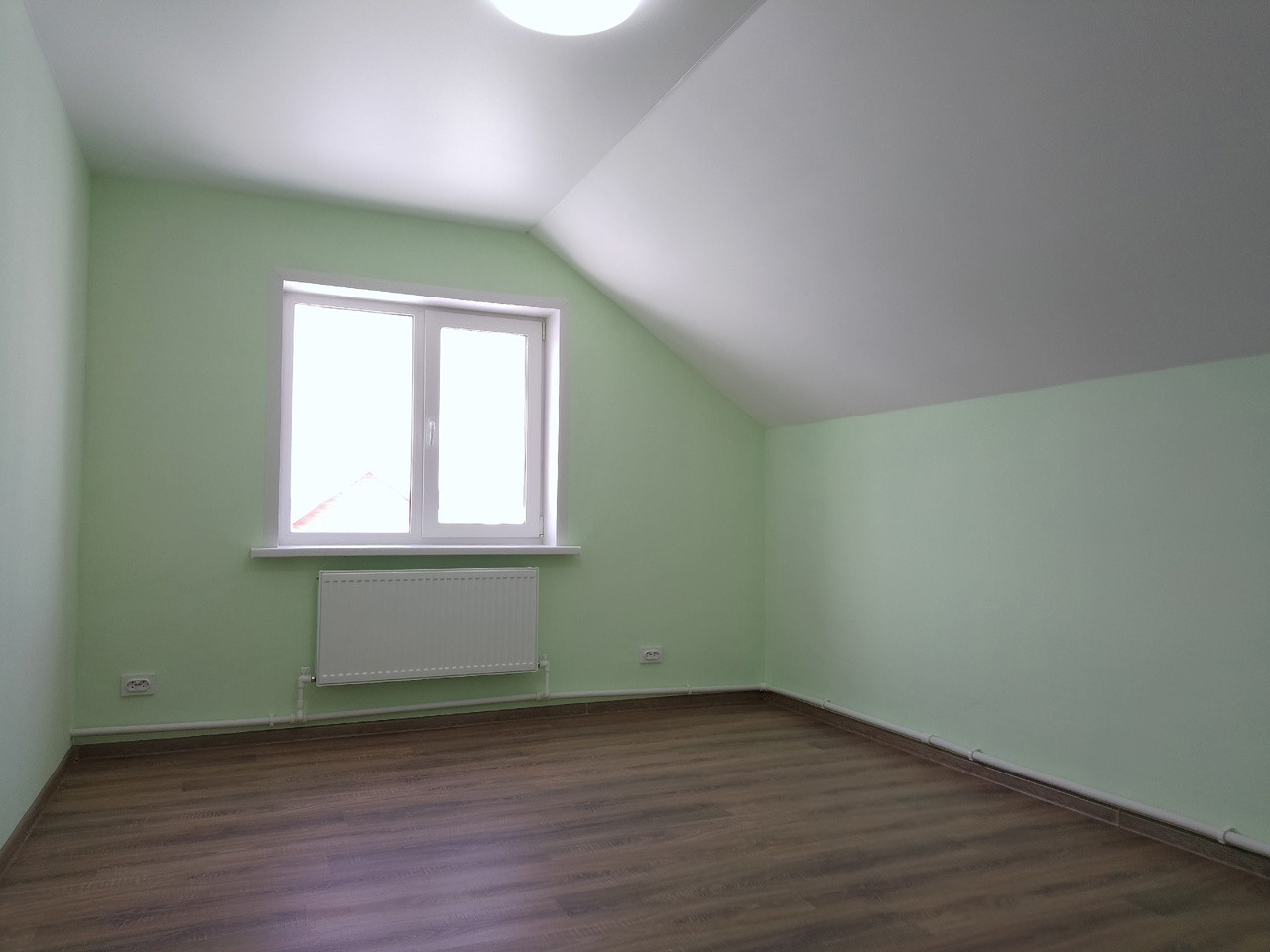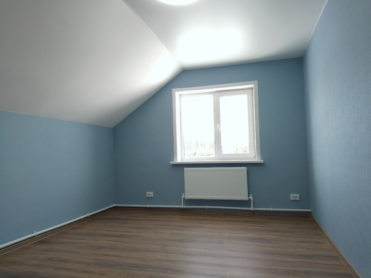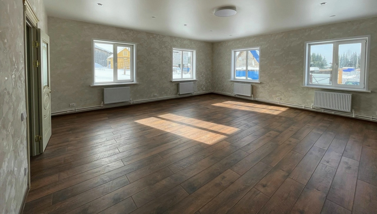 ✅На полу ламинат, стены штукатуренные.