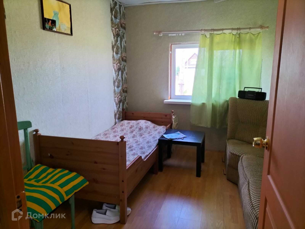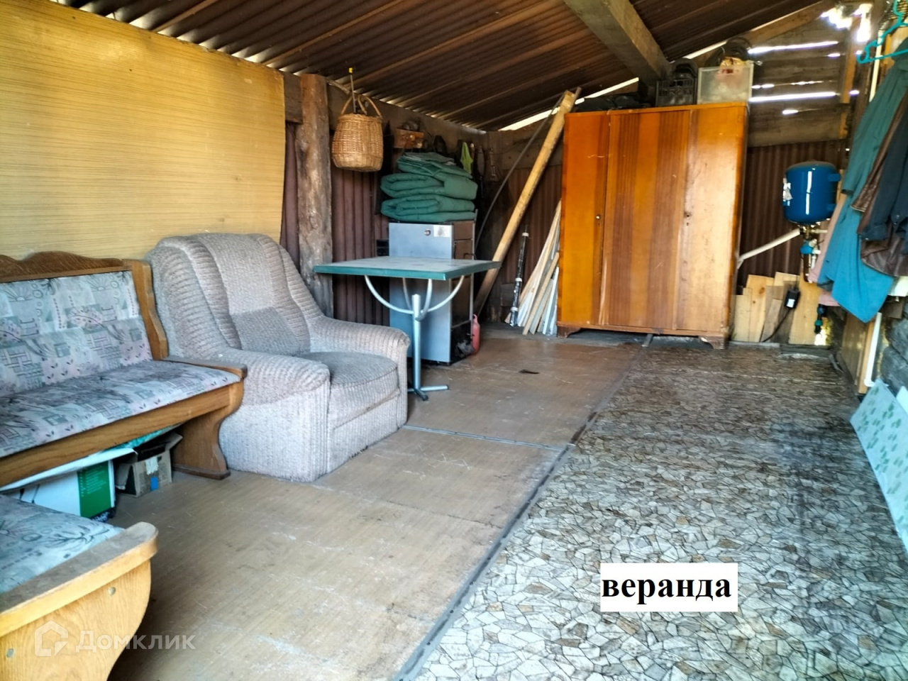 Планировка: веранда + гостиная-столовая + 2 комнаты; также