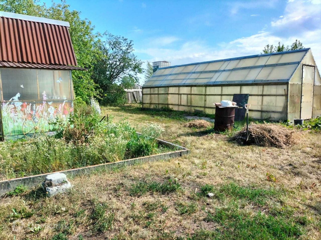 также есть большая теплица и еврокуб (емкость для накопления воды)