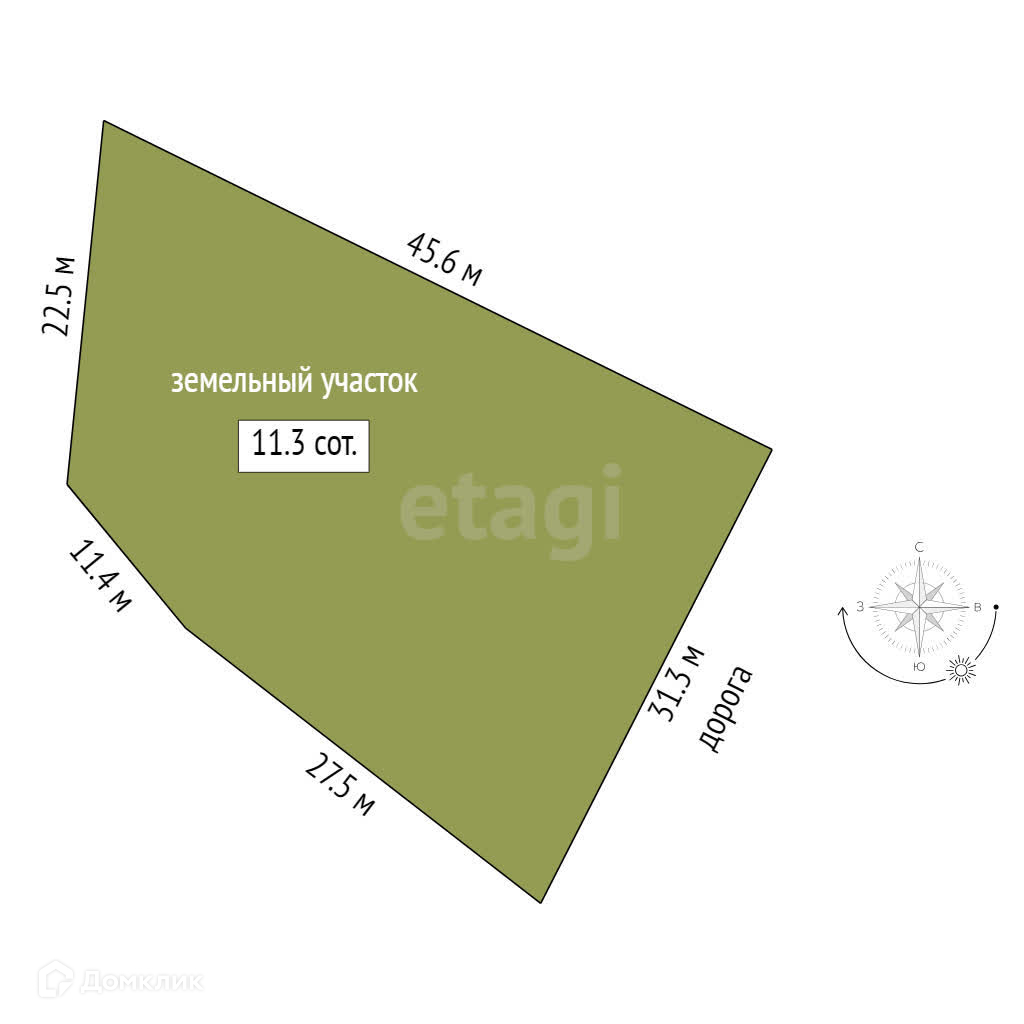 Площадь участка 11.3 сот.