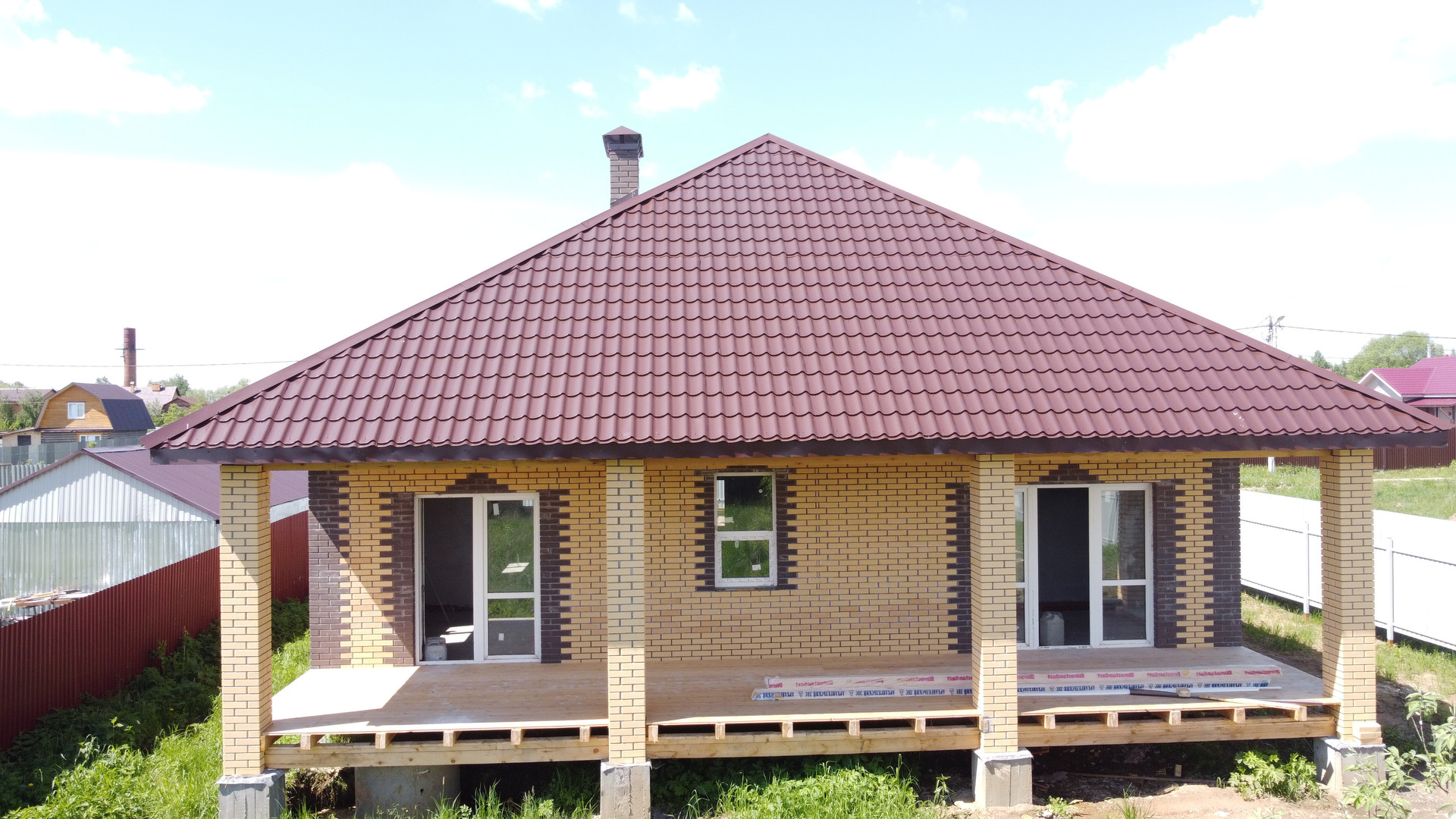 Отличный дом новой постройки из газосиликата обложен кирпичом общей площадью 130 кв.м на участке 10 соток. В доме 4 комнаты панорамные двери на террасу, просторный коридор и кухня, сан/узел в доме. Заведено электричество. Стены отштукатурены, полы залиты.