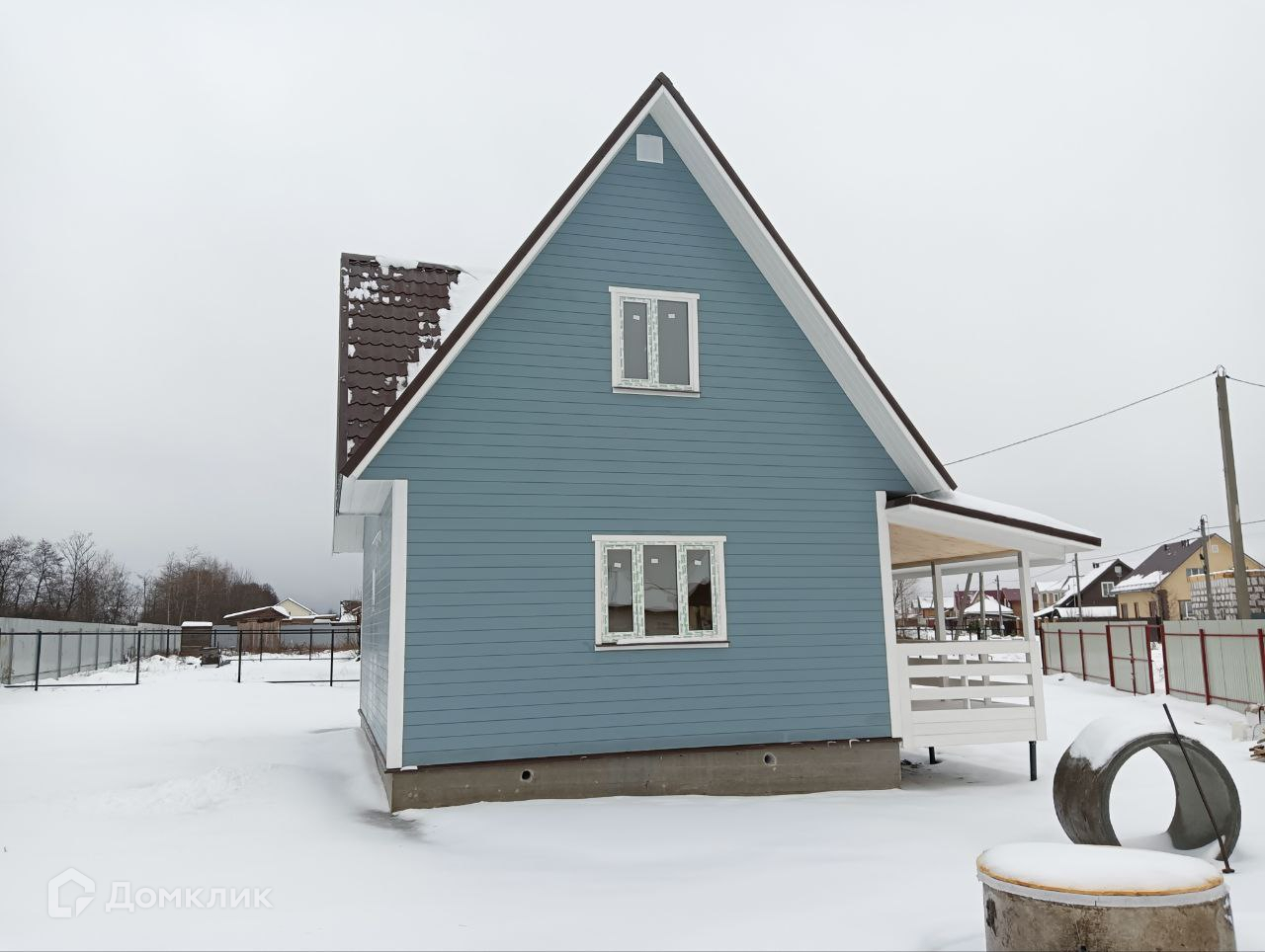 Участок с забором, распашные ворота, калитка, парковка и плитка до дома. Современный дом,полностью готовый для круглогодичного проживания.