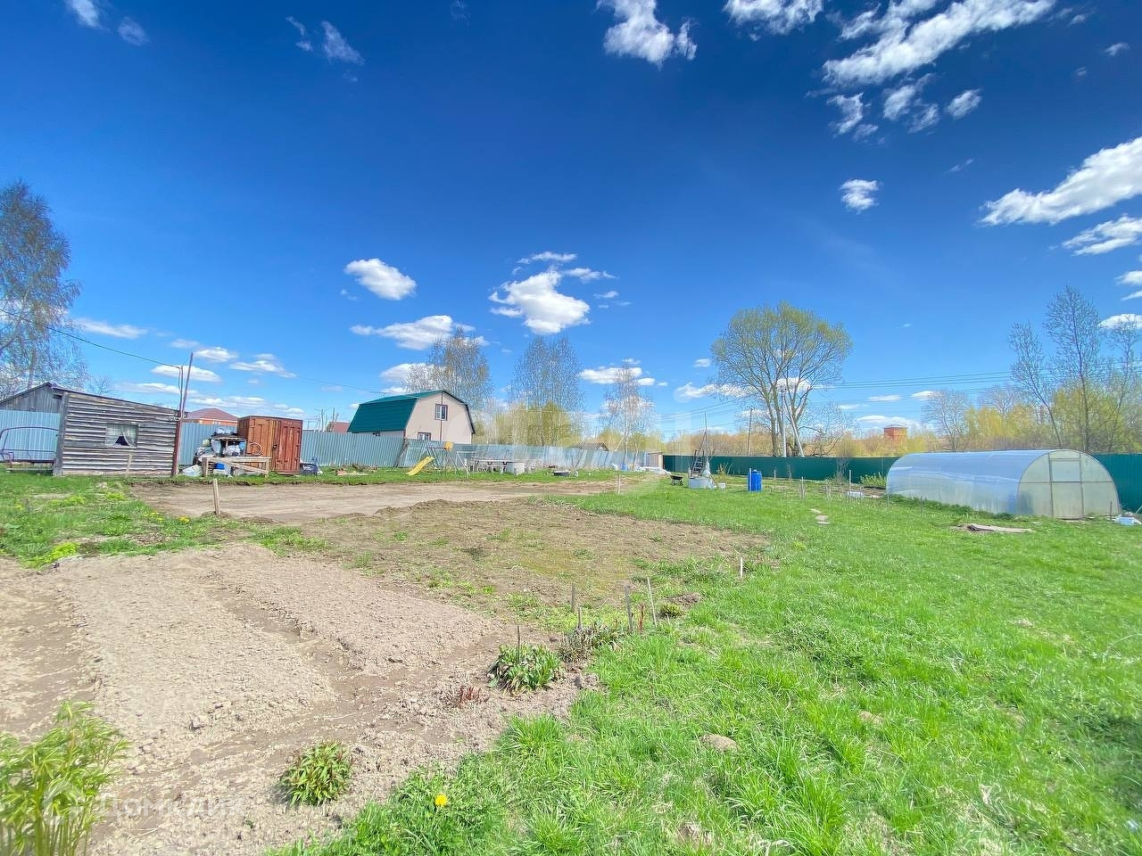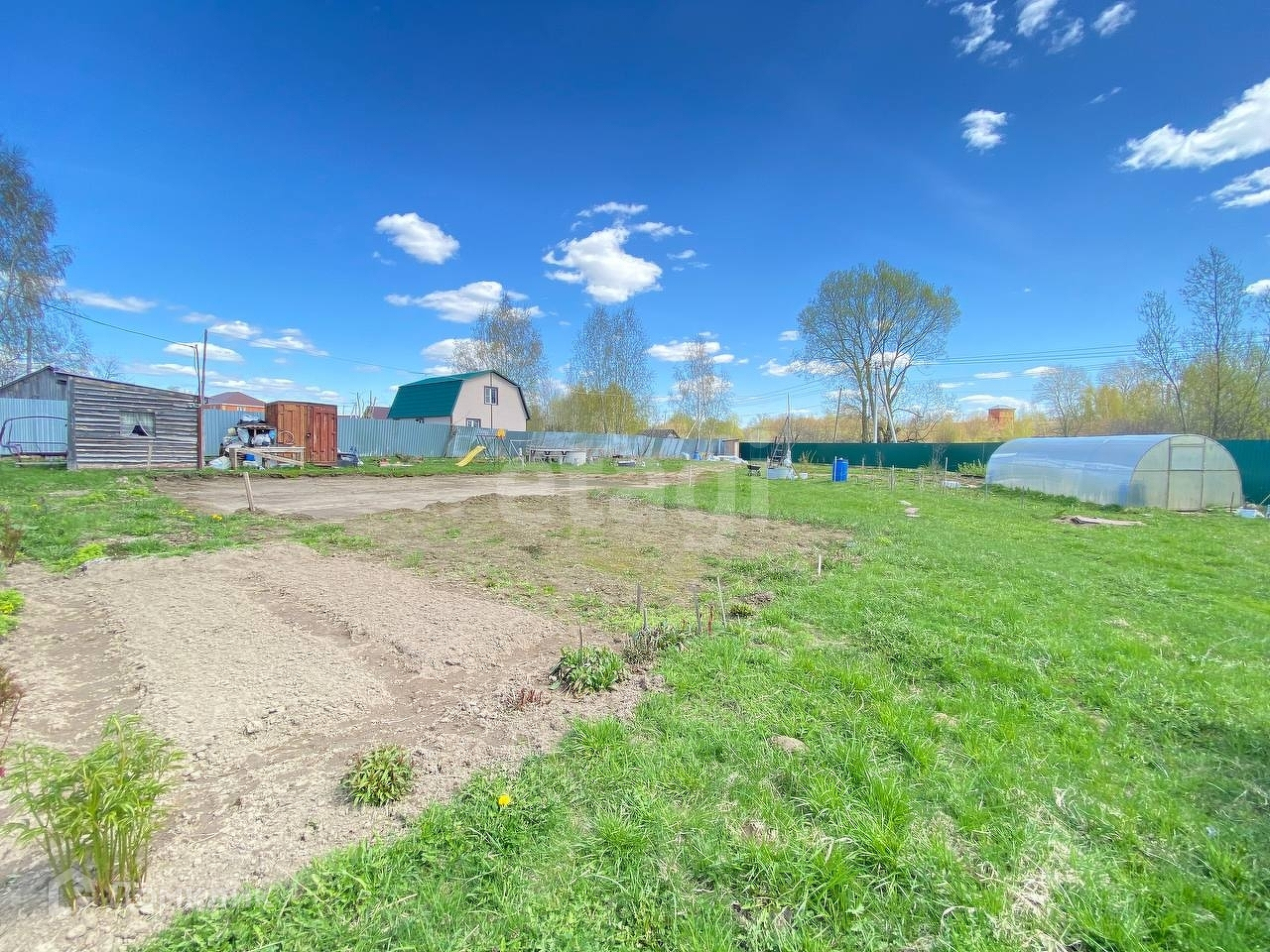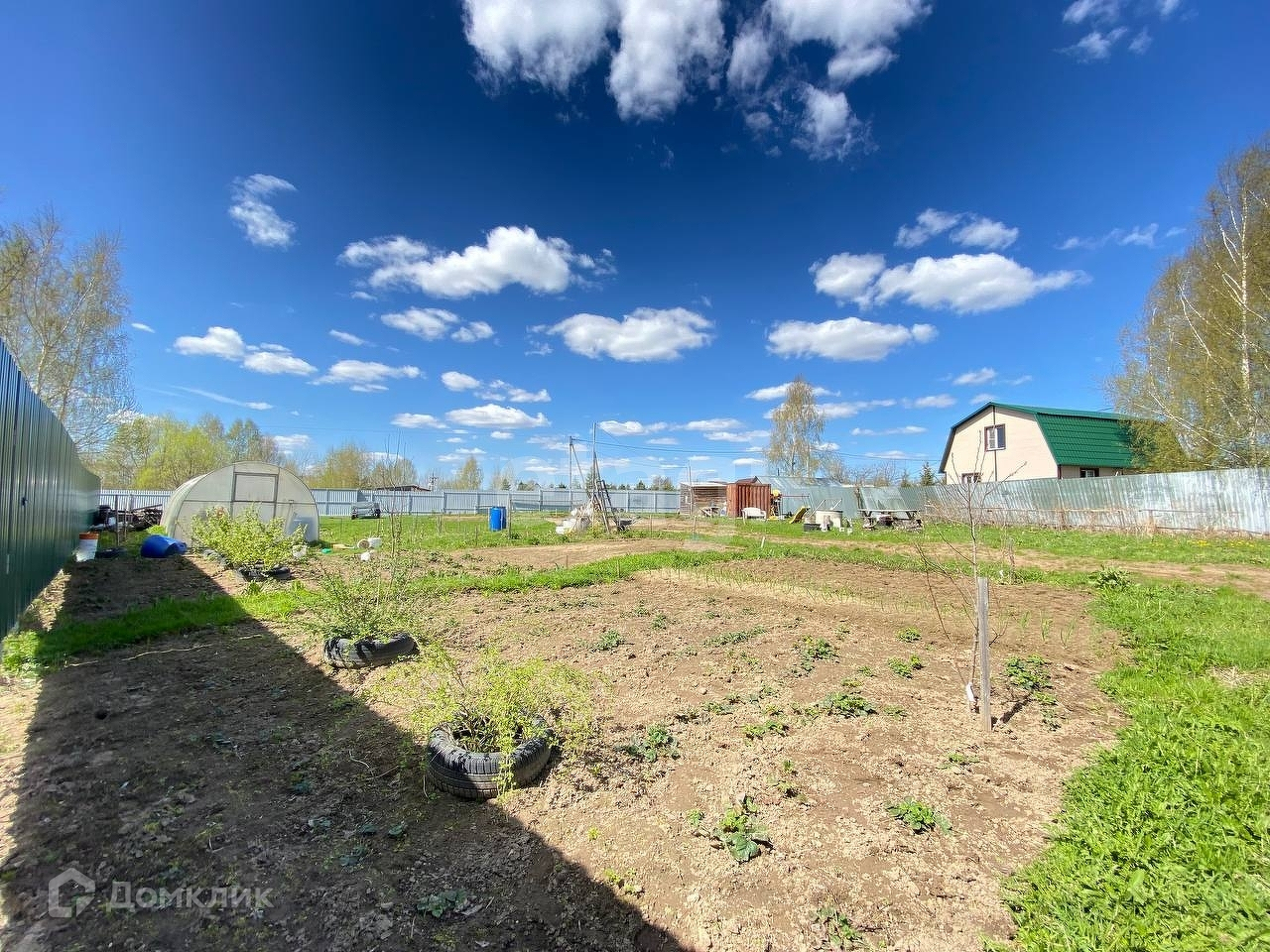 Земля огорожена капитальным забором по периметру, три калитки для выхода с участка и откатные ворота. За участком березовая роща. Участок сухой, выровненный. Посажены плодоносящие деревья. Соседи дружелюбные.