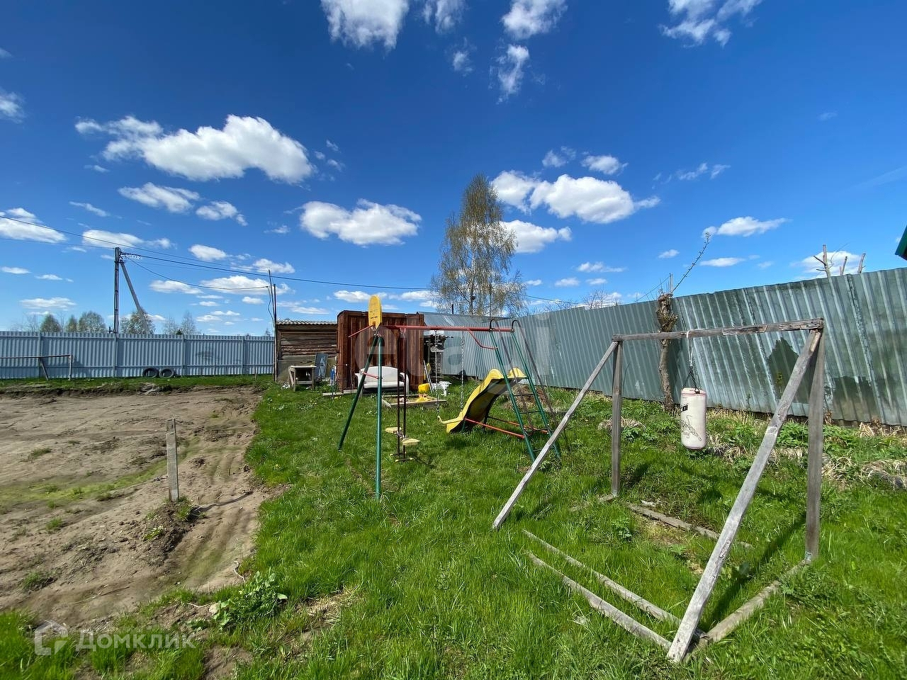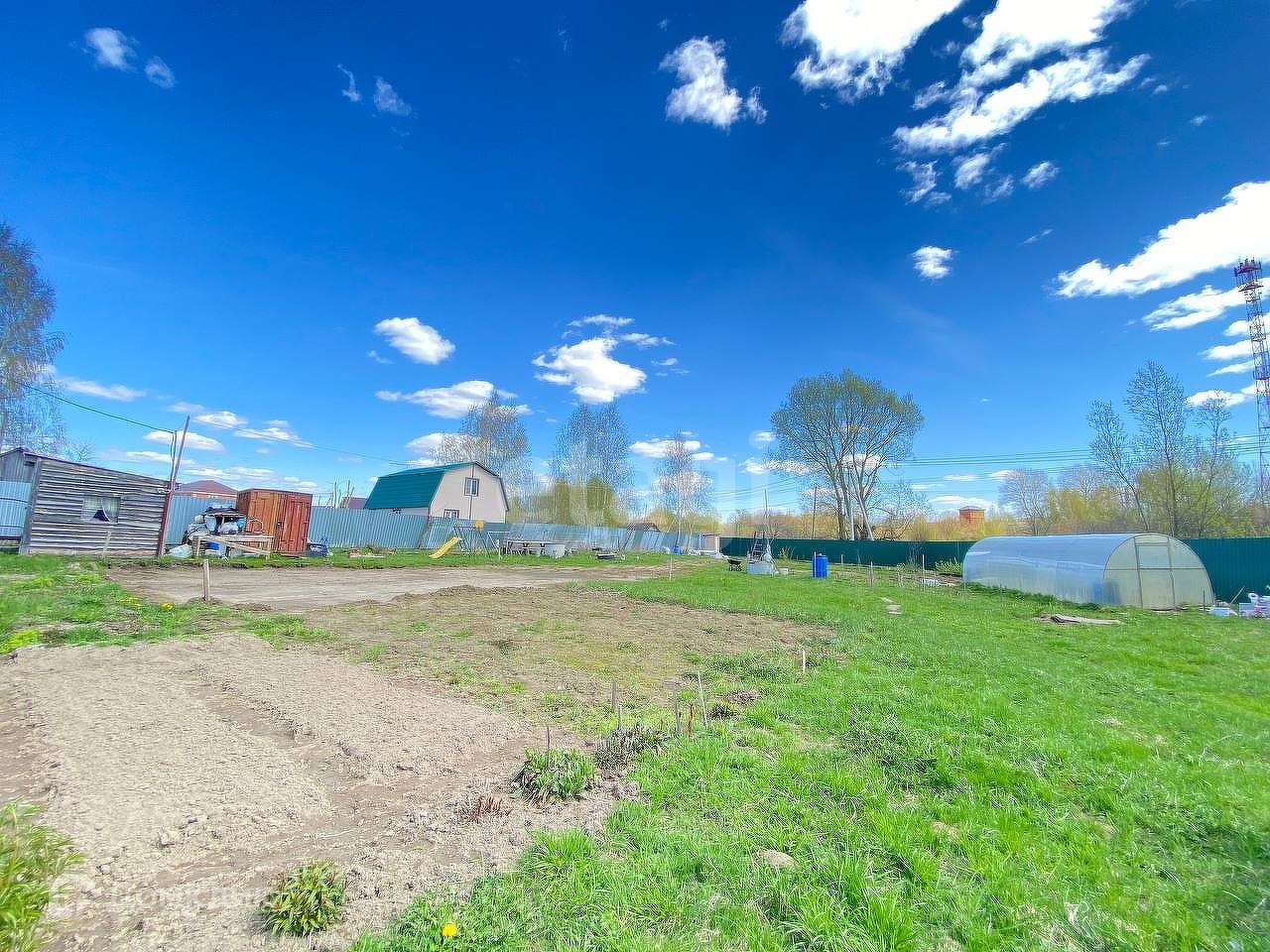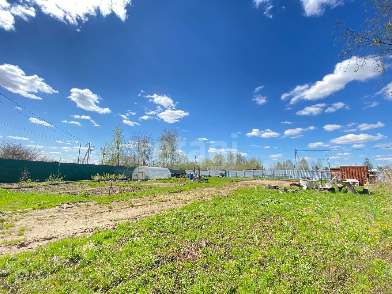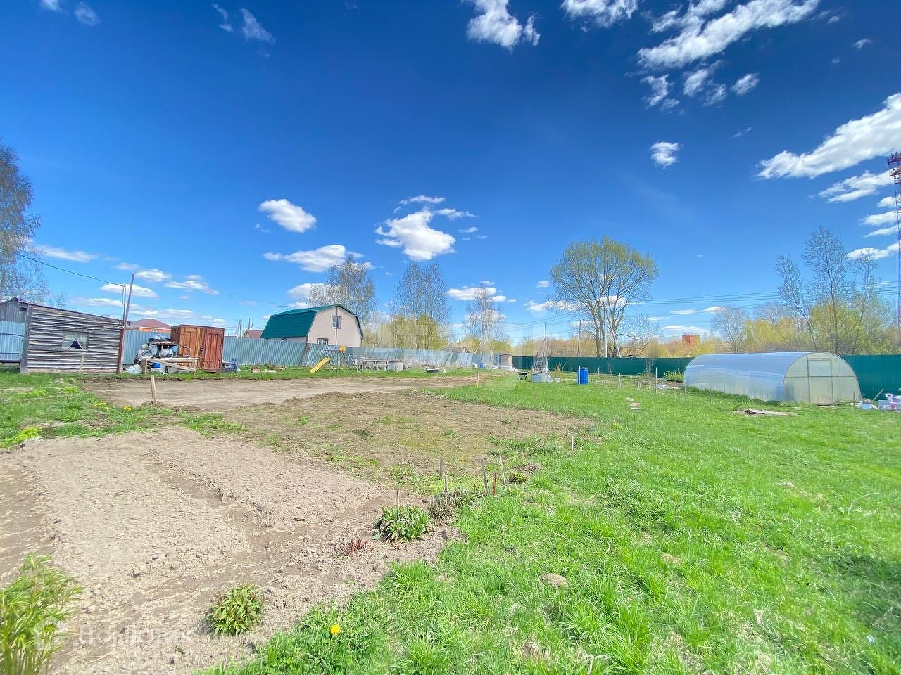 Земля огорожена капитальным забором по периметру, три калитки для выхода с участка и откатные ворота. За участком березовая роща. Участок сухой, выровненный. Посажены плодоносящие деревья. Соседи дружелюбные.