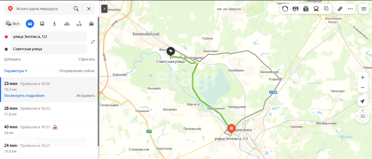 До Белоозерского 15 минут на автобусе.
