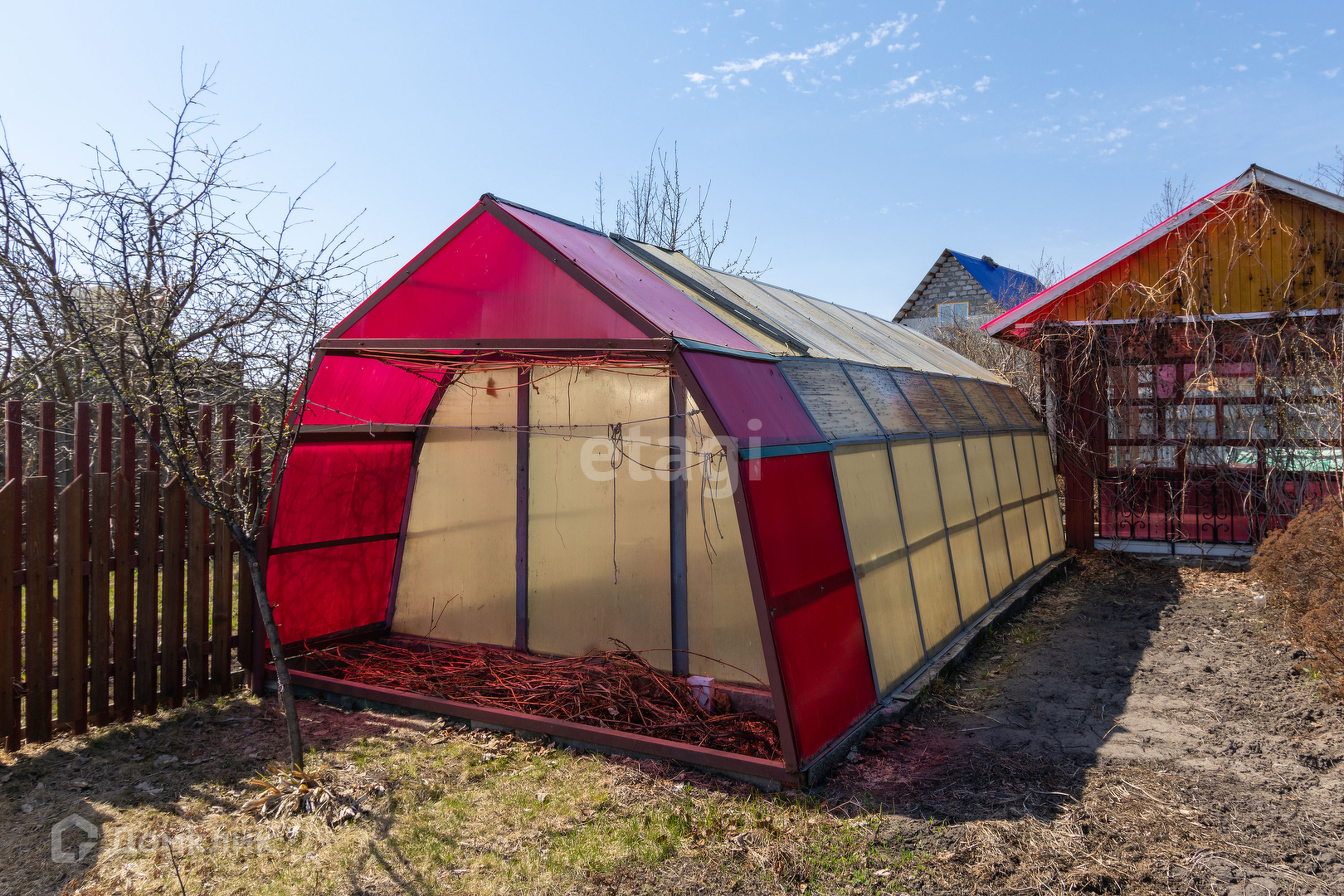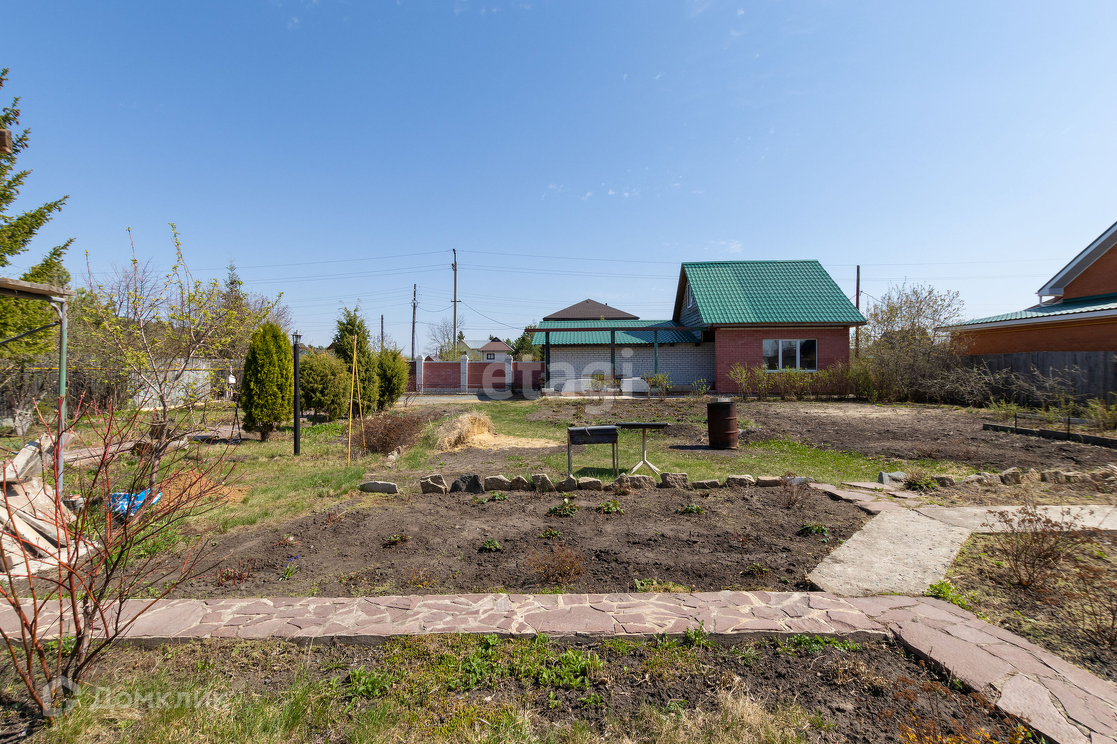 Участок очень ухоженный , есть много плодовых деревьев, ягодных кустарников, многолетних цветов.