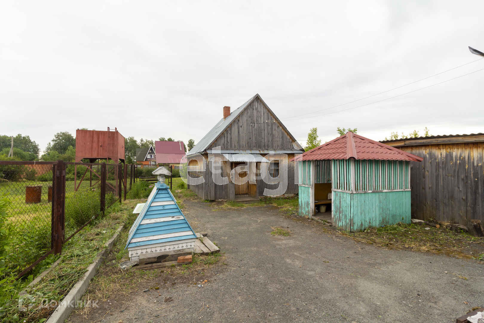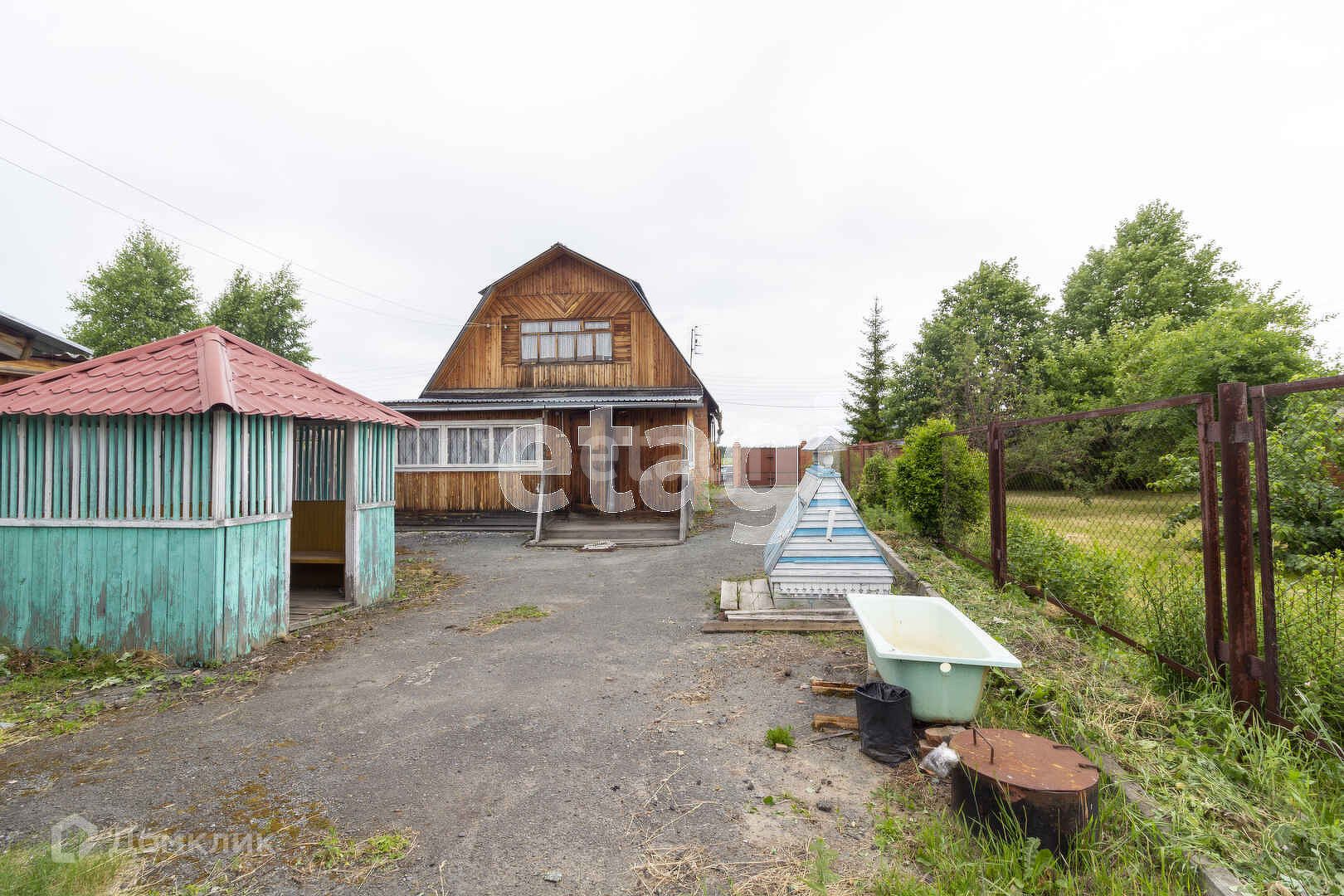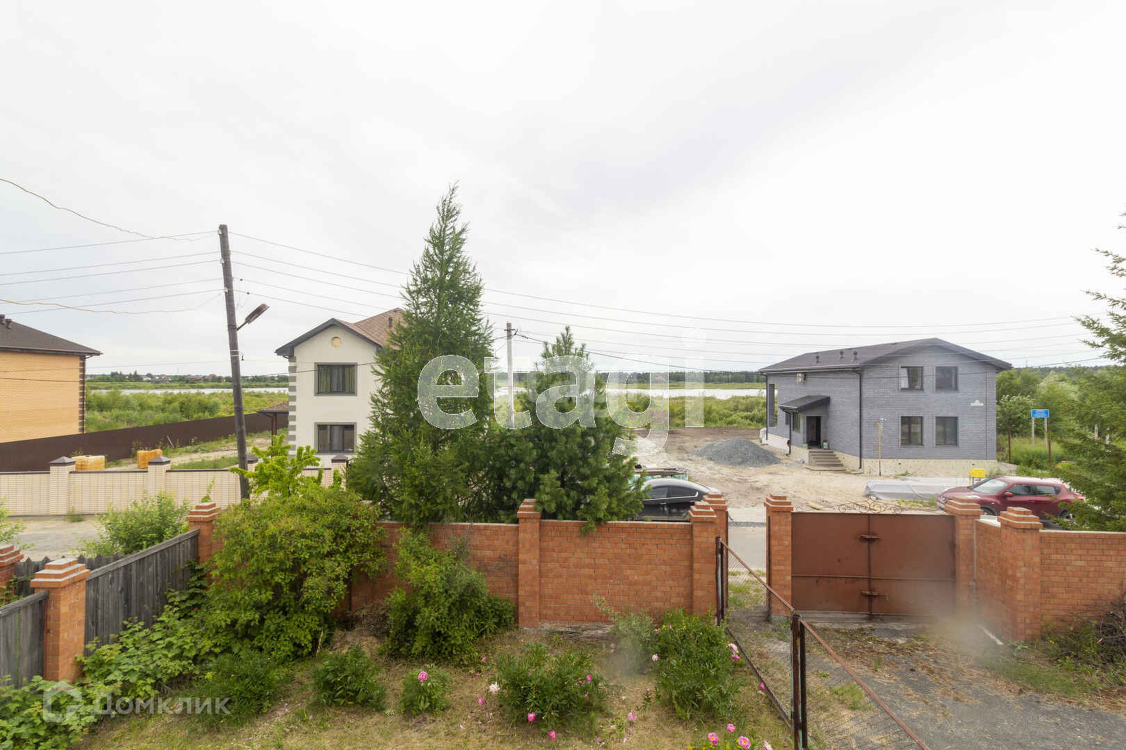 Дом на ленточном фундаменте, участок площадью соток. Участок огорожен капитальным забором из кирпича. Ворота металлические. Также на участке имеется капитальный кирпичный гараж и баня. Имеется скважина и колодец, вода в колодце кристально чистая, с идеальным балансом химических элементов (делали анализ) На территории имеются различные насаждения. Асфальт до самого участка. Шикарные дома по-соседству.
