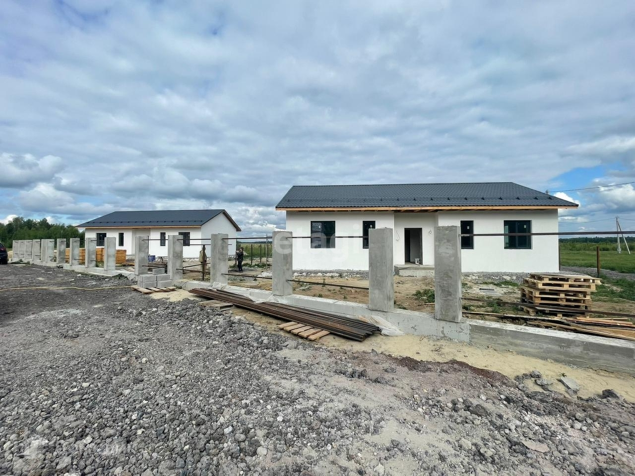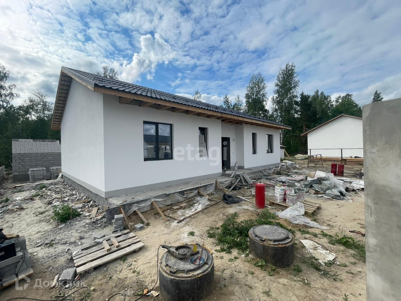 Уважаемые покупатели! Предлагаем вам одноэтажный дом, индивидуальной застройки, который находится в новой нарезке района д. Зубарево. Исполнение из керамзитоблока (Вензилинского завода керамзитового гравия толщиной 400 мм). Внешняя сторона стен фасада дома утеплена каменной минеральной ватой толщиной 100 мм, и нанесена декоративная штукатурка. Дом построен на монолитной плите толщиной 300 мм. Пластиковые окна и двери выполнены из профиля Rehau, тройной стеклопакет с энергосберегающим напылением, толщина профиля 70 мм. Профиль окон ламинированный, цвета антрацит, который удачно гармонирует с темно-серой крышей из металлочерепицы Монтеррей с молотковым эффектом. Установлена входная дверь с терморазрывом. По планировке: в доме кухня-гостиная с панорамными дверями и выходом на терассу, три спальни, два санузла, гардеробная, котельная, коридор и зона прихожей. По куммуникациям: водоснабжение дома при помощи скважины глубиной 40 метров с чистой почти артезианской водой, скважина и насос установлены в котельной (внутри дома); отопление выполнено в виде теплого пола с элементами системы умный дом, которая позволяет контролировать температуру при помощи приложения и создавать оптимальный микроклимат воздуха в каждом отдельном помещении; на участке смонтирован септик с дренажными колодцами, позволяющий производить откачку сточных вод раз в 2-3 года; по всему дому разведено электричество, стены оштукатурены по маякам и выполнена предчистовая отделка. Звоните, покажем в удобное для вас время!