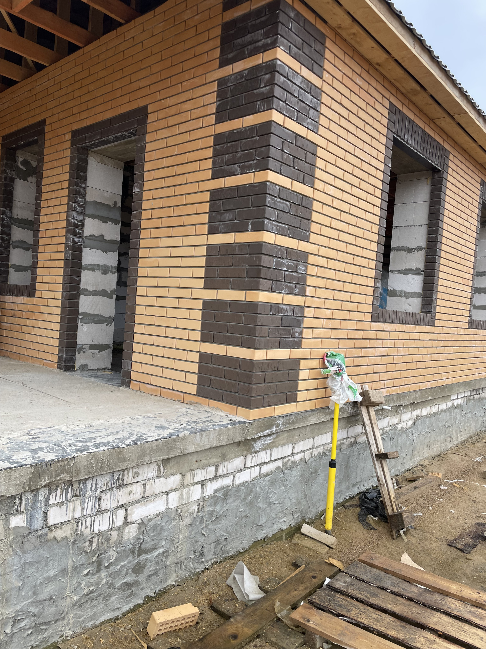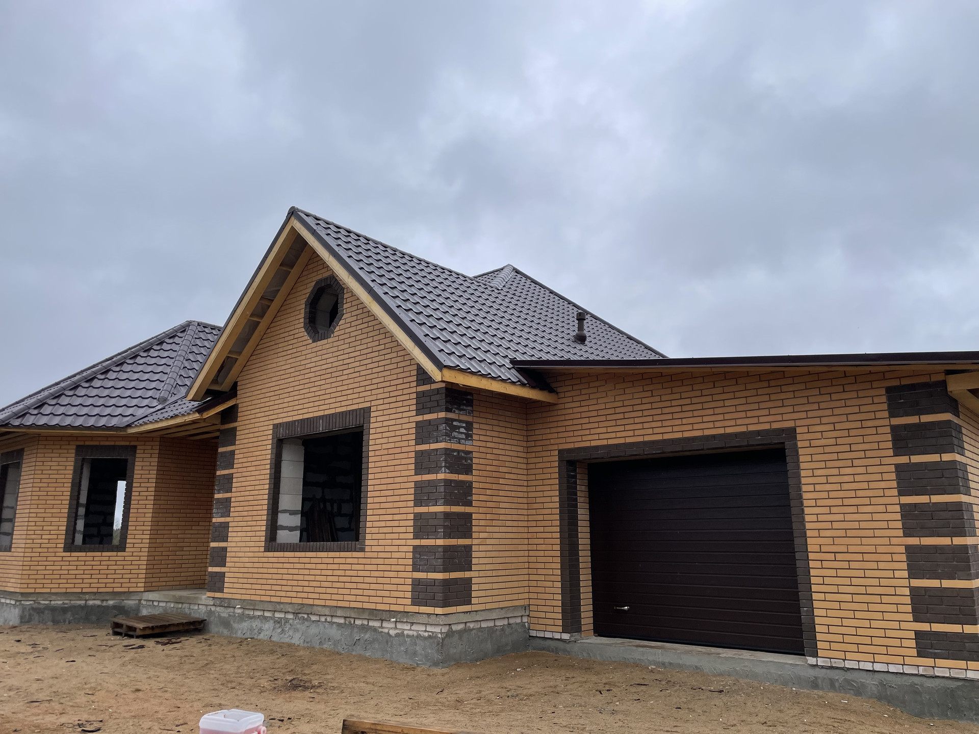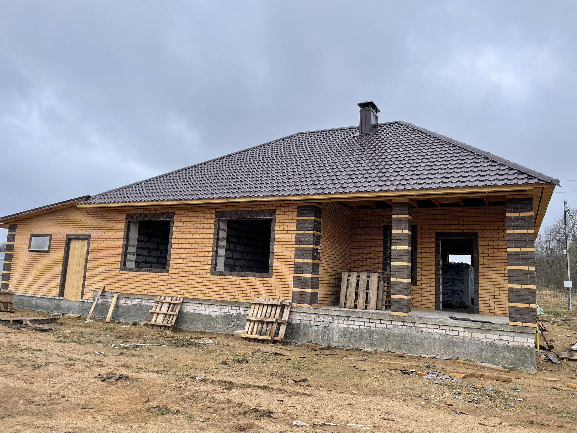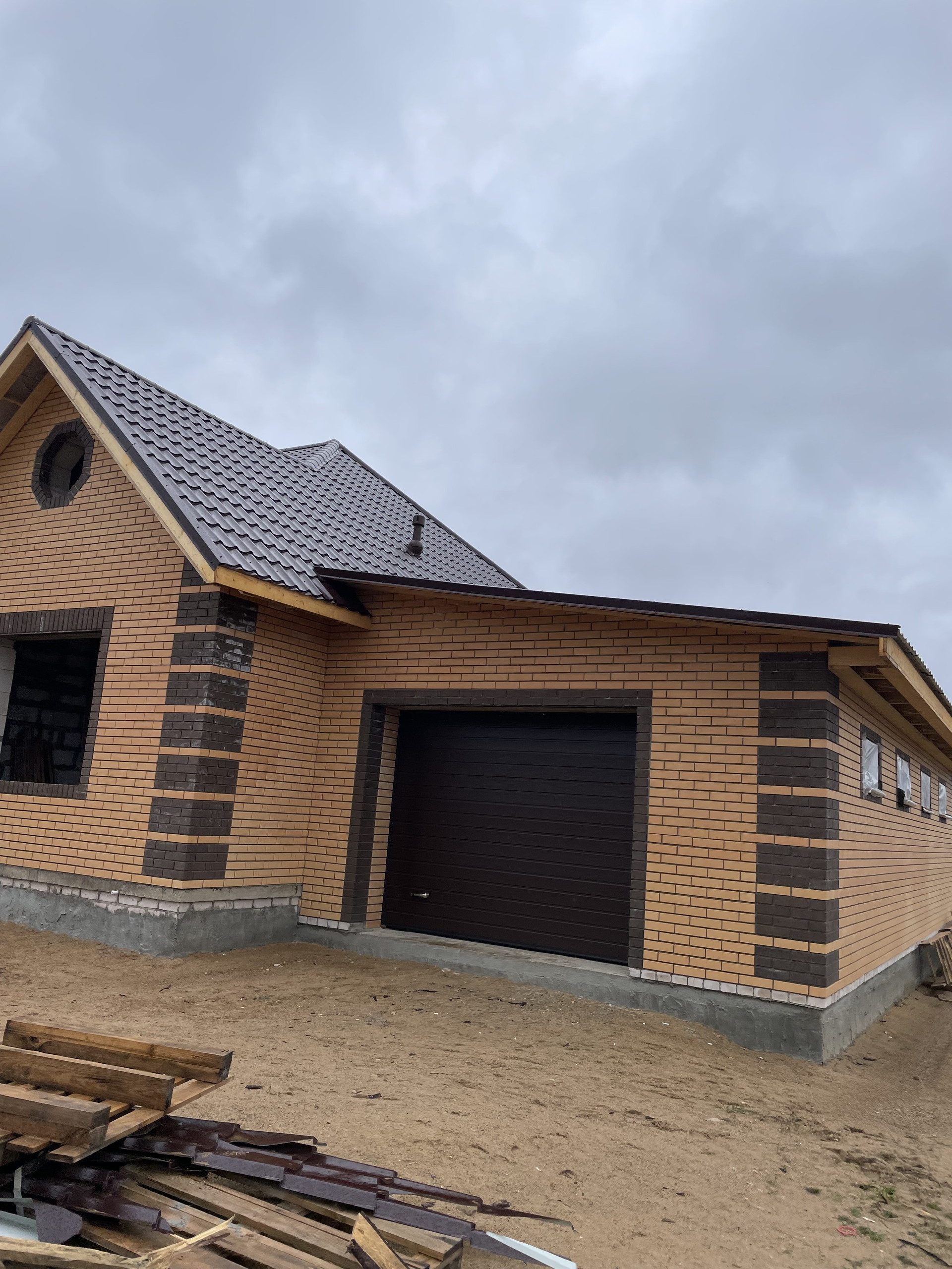 Дом выполнен из газосиликатного блока, обложен современным кирпичом.