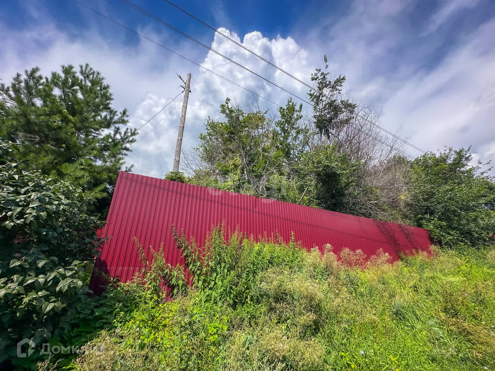 Периметр территории огорожен забором.