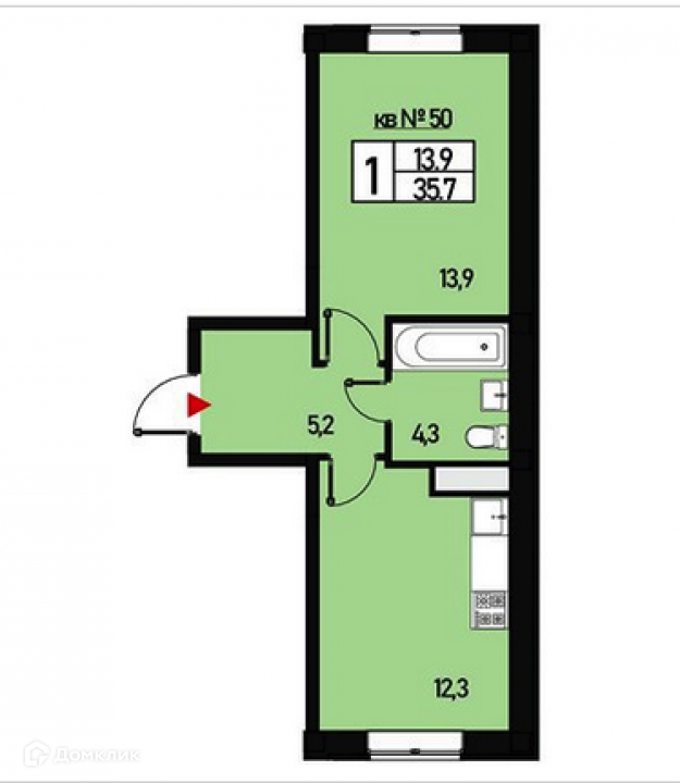 Общая площадь 35.7 м2