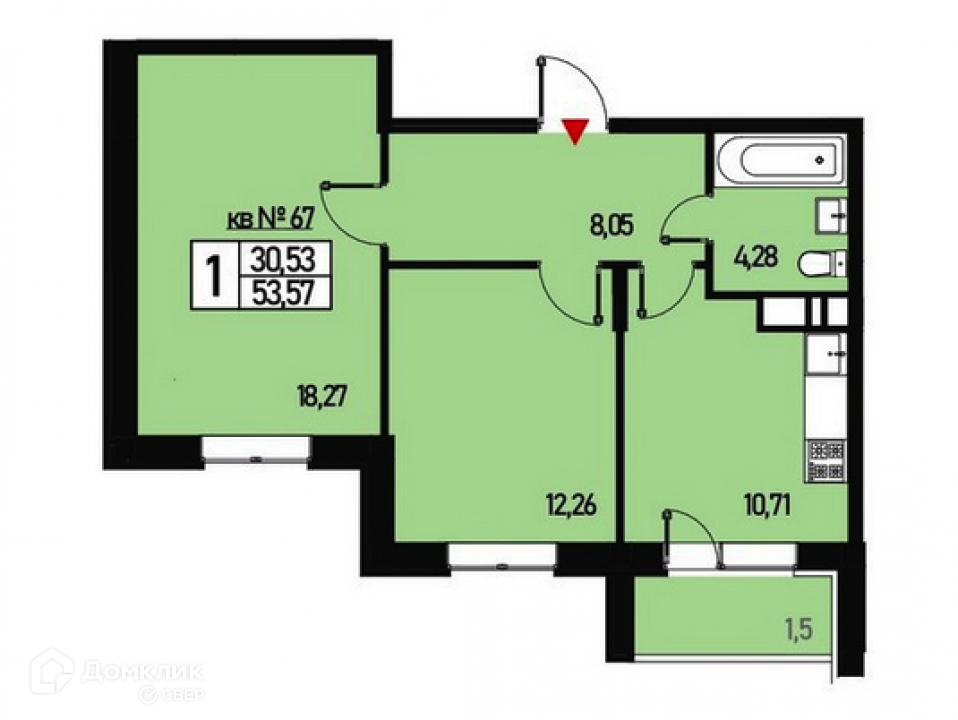 Общая площадь 53.57 м2