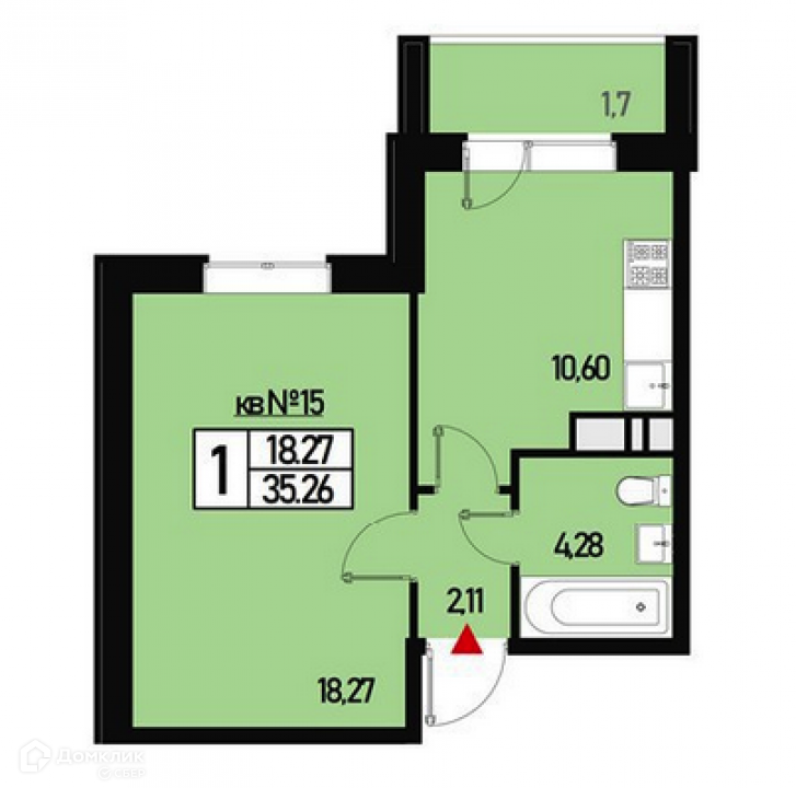Общая площадь 35.26 м2