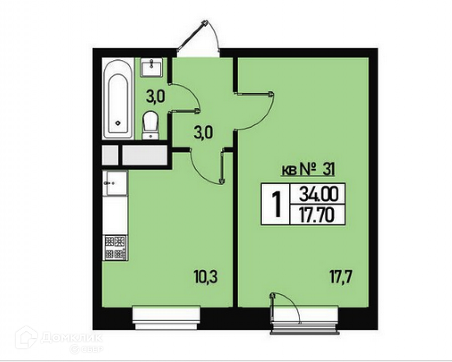Общая площадь 34 м2
