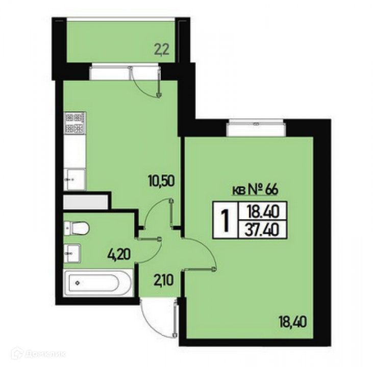 Общая площадь 37.4 м2